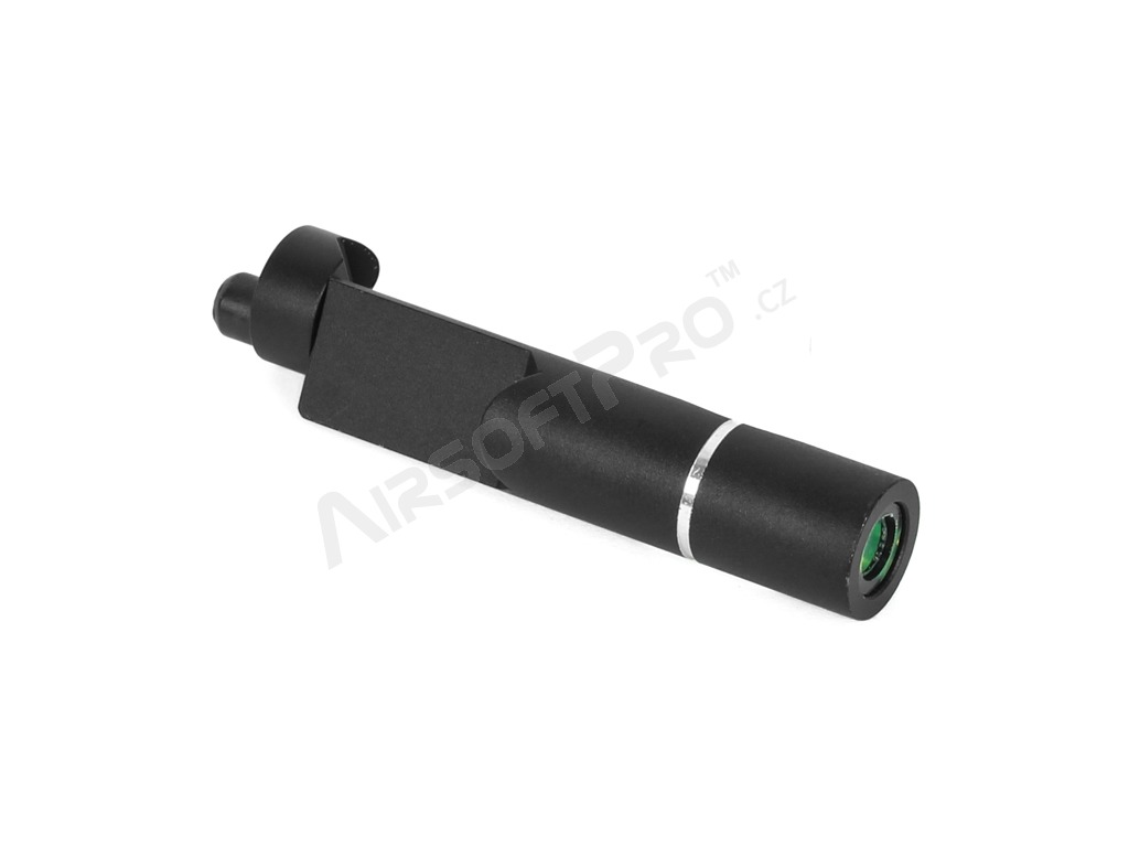 El nivel de burbuja en el carril RIS vigila la inclinación y, por tanto, la posición perpendicular exacta del arma. Esto es esencial para el buen funcionamiento del efecto HopUp, para que la bala no se desplace lateralmente debido a una inclinación no deseada.
