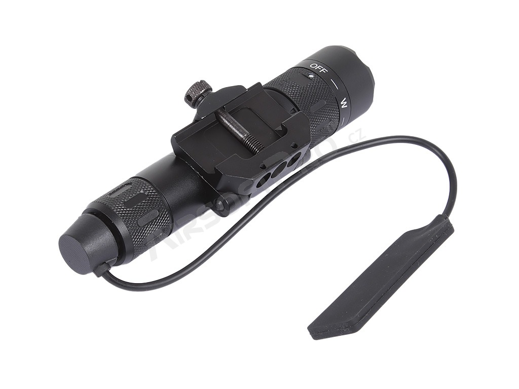 Linterna LED táctica WMX200 (estroboscópica / IR) con soporte para arma plegable RIS - Negro [Night Evolution] Linterna LED táctica WMX200 (estroboscópica / IR) con soporte para arma plegable RIS - Negro