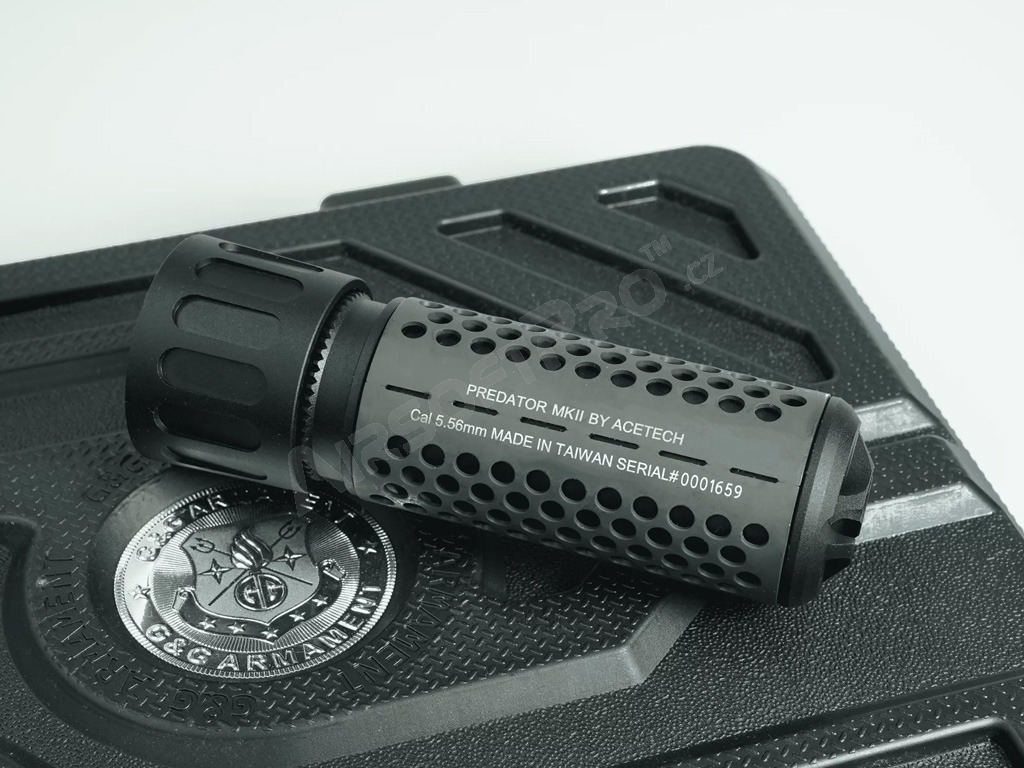 El Predator tiene una gestión inteligente de la energía: después de 5 minutos de inactividad, pasa automáticamente al modo de reposo. Para despertarlo, basta con agitar el silenciador. Por supuesto, también se puede apagar completamente con el botón de encendido.