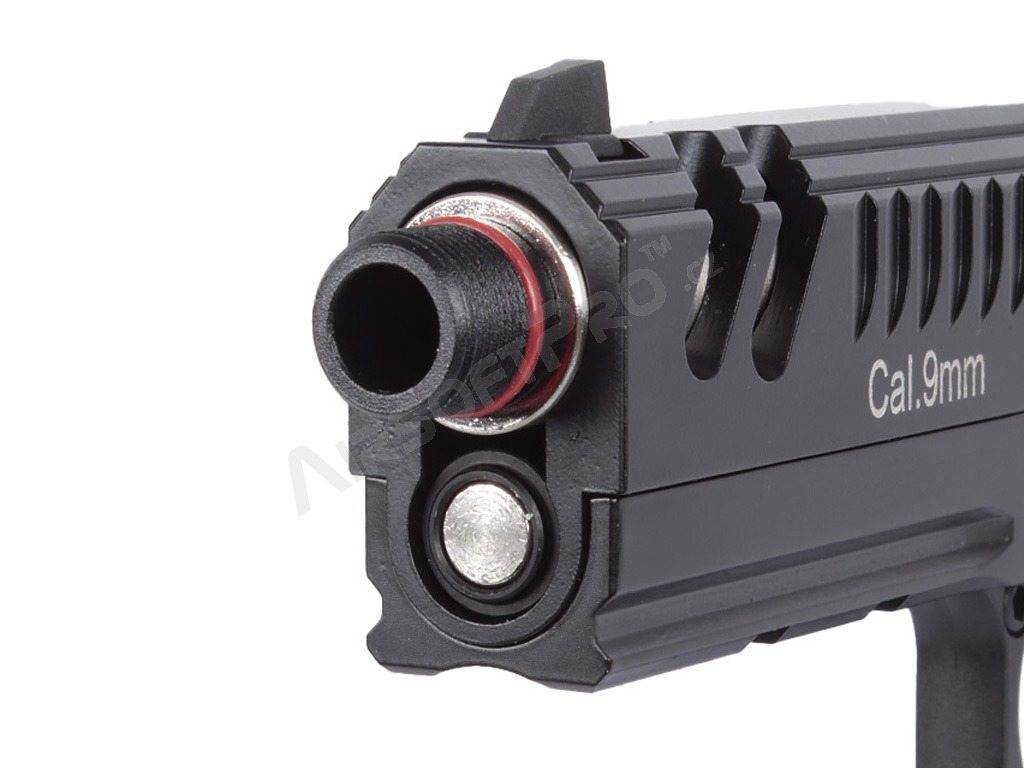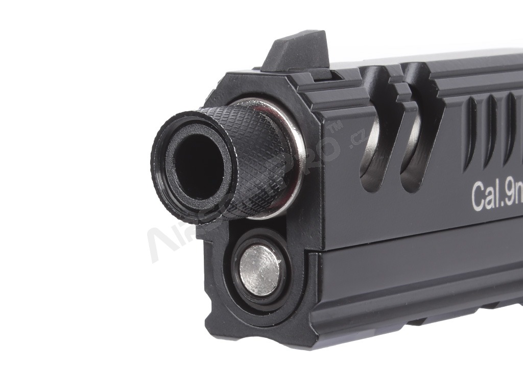 La tapa de rosca incluida no sólo cumple una función protectora, sino que también completa estéticamente el aspecto de la pistola cuando no se utiliza.