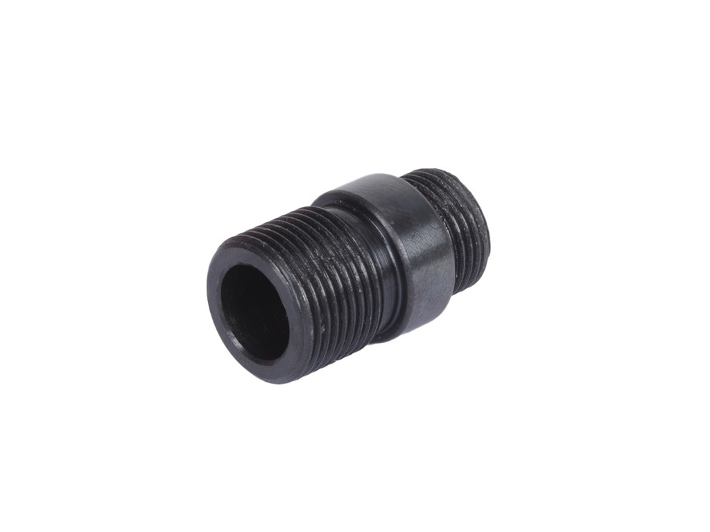 El adaptador se puede atornillar fácilmente en el extremo del cañón de pistolas como Vorsk, Raven y otras pistolas que tengan una rosca interna en el cañón M12. Cualquier supresor con rosca izquierda M14, que es el tipo de rosca comúnmente utilizado para la gran mayoría de los supresores, puede atornillarse a este adaptador.