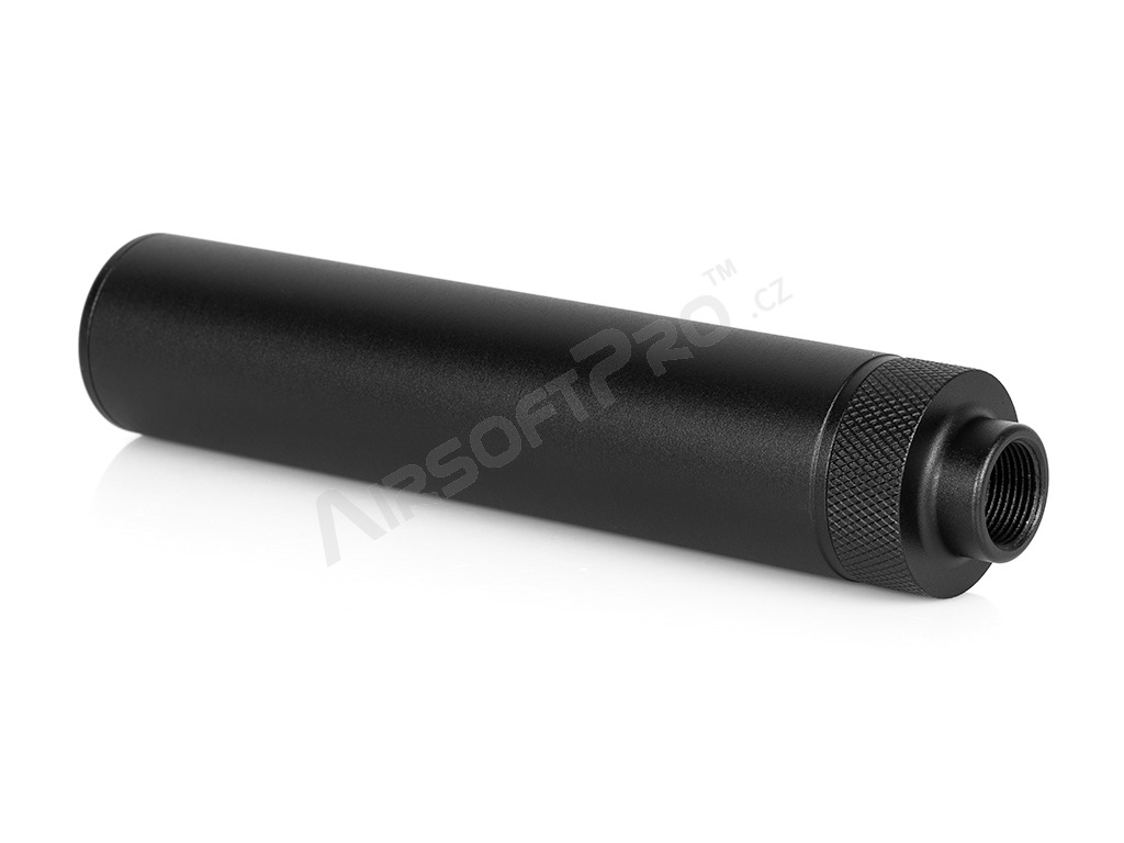 Gran accesorio para su pistola. Puede funcionar como un accesorio estético o puede ocultar un cañón extendido. El silenciador tiene un relleno de espuma para reducir el ruido cuando se dispara. La superficie del silenciador es negro mate anodizado.