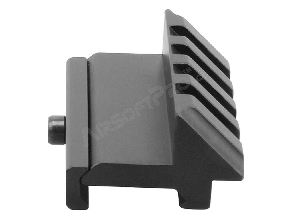 La montura está diseñada para raíles RIS estándar de 21mm, con apriete con llave Allen. Está fabricada en aleación de aluminio 6063-T6 con acabado mate. La montura está diseñada para armas de filo, pero por supuesto también se puede utilizar en armas de airsoft.