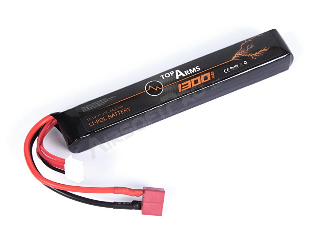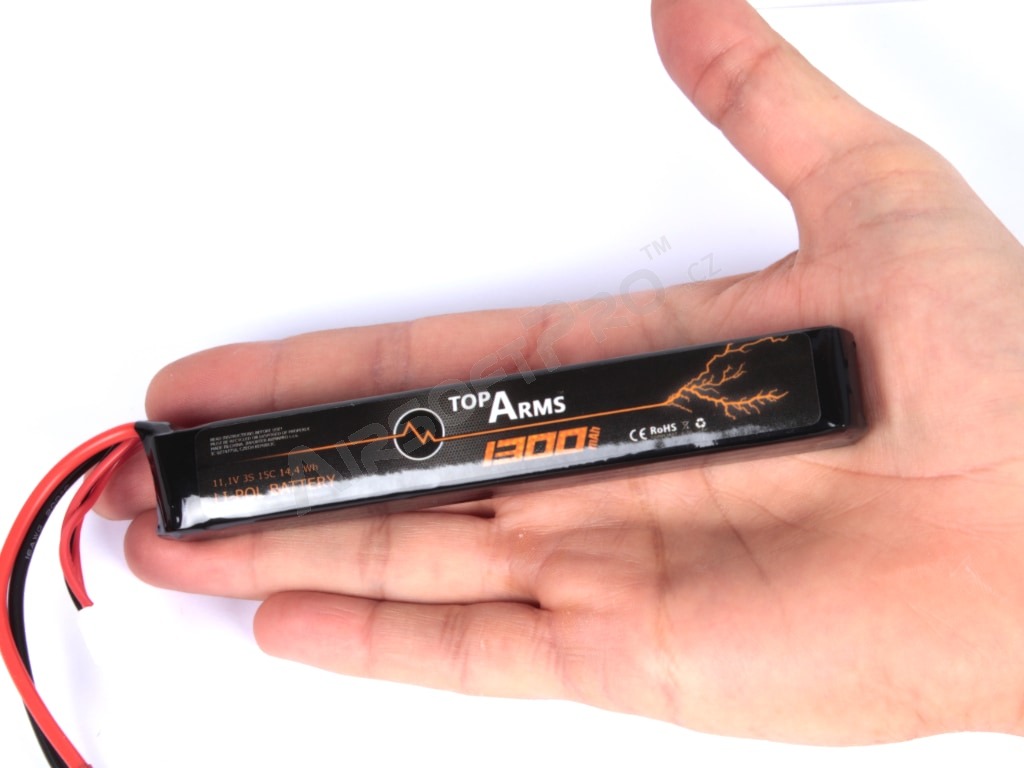 Batería Li-Po 11,1 V 1300 mAh de alta calidad de TopArms. La batería tiene un conector Mini Tamiya y sólo se puede cargar con un cargador Li-Po con equilibrador.