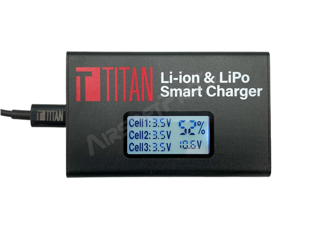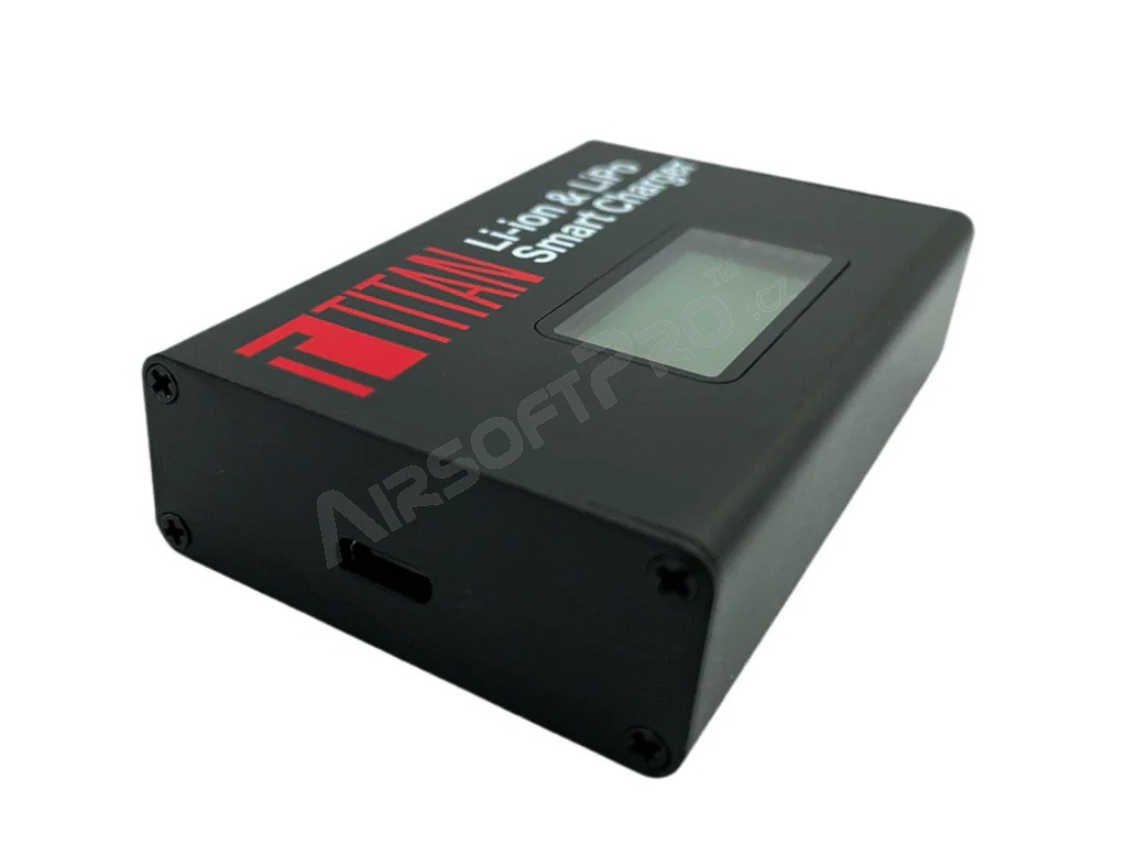 Cargador digital rápido TITAN V2 con pantalla para cargar baterías de Li-Ion / Li-Po de 2-3 celdas. Las baterías se cargan mediante el conector de servicio.