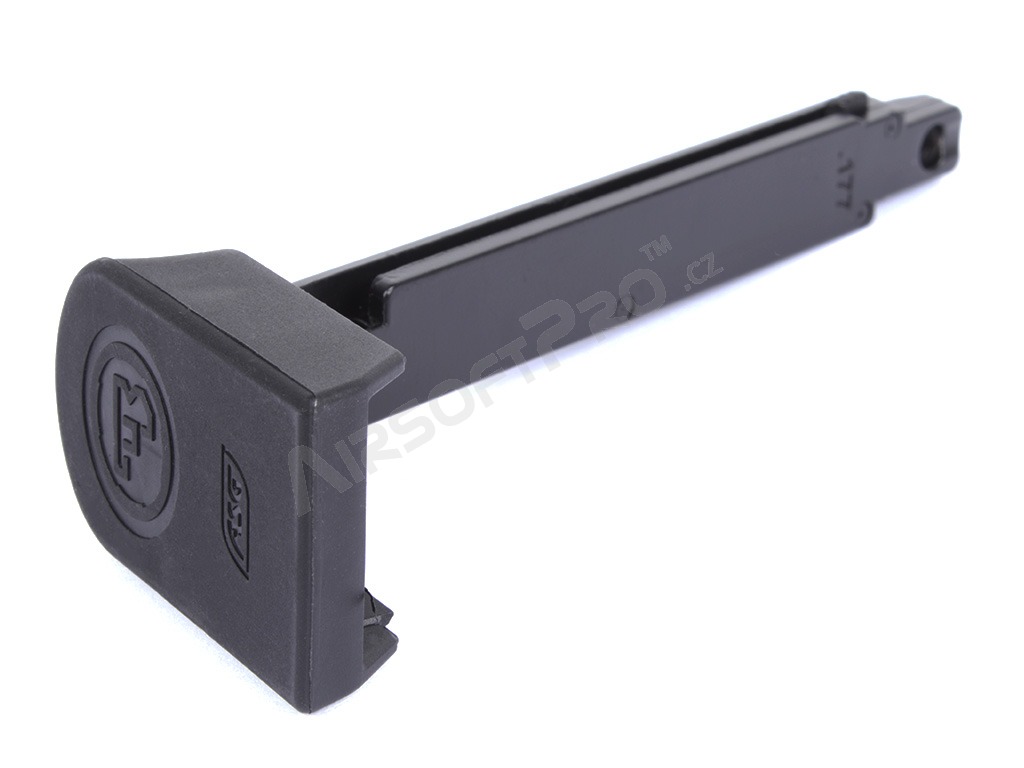 El cargador es compatible tanto con la versión no blowback como blowback de la pistola. Está hecho de metal con base de plástico.