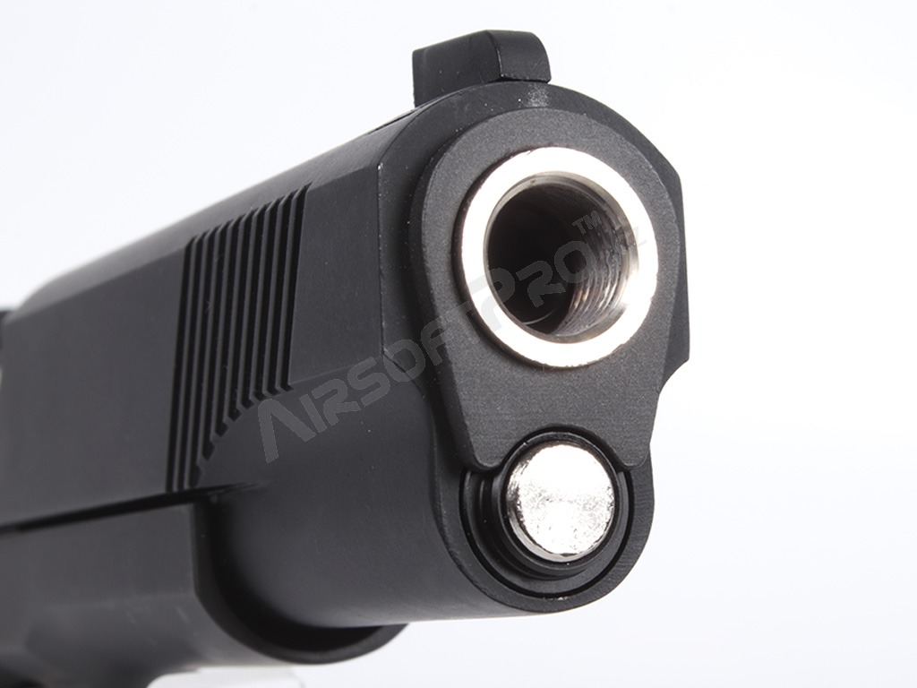 El cañón exterior metálico lleva marcas realistas ".45 ACP". En el interior del cañón hay una rosca interna M11x1 que permite la instalación de un silenciador mediante un adaptador (adaptador no incluido). La pistola es compatible con la serie de cargadores TM-spec 1911 (por ejemplo, Tokyo Marui y otras variantes compatibles), lo que facilita la ampliación de su equipamiento.