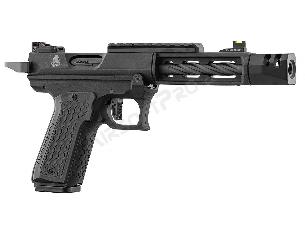 Esta pistola semi/totalmenteautomática con blowback está fabricada en polímero reforzado y tiene un diseño totalmente licenciado. La réplica cuenta con un innovador compensador cuadrado Game Changer Pro, apoyapulgar CNC y gatillo ligero. Además, la culata Tandemkross Hivegrip proporciona un agarre firme. La pistola ofrece una precisión inigualable gracias a su construcción Eagle Eye y a las miras de fibra óptica. El cargador de 24 cartuchos y el hop-up ajustable aumentan su versatilidad.