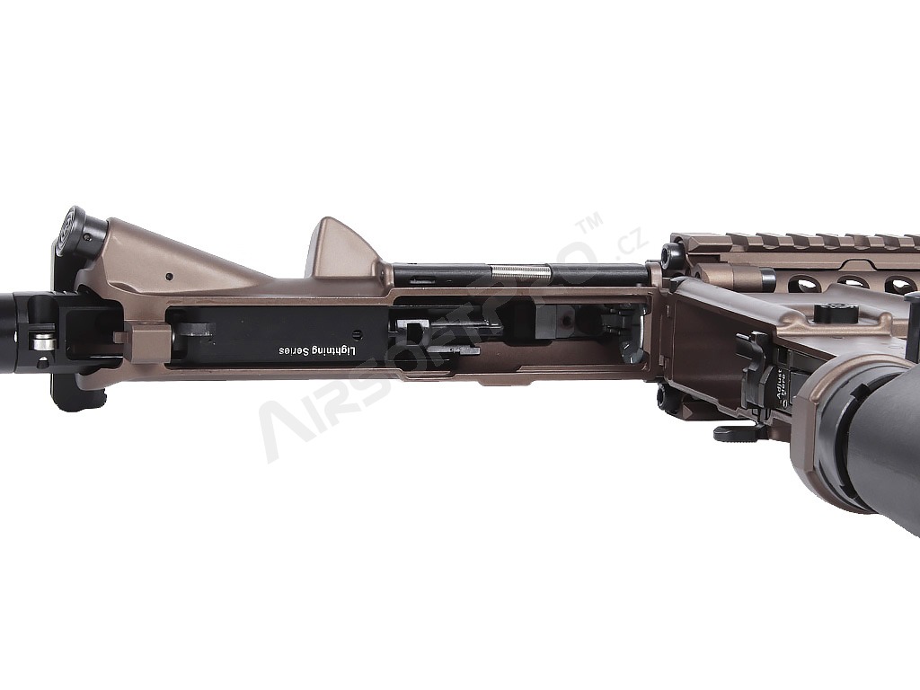 El cañón exterior compacto de 10,5" hace de este rifle una herramienta ideal para el CQB y el combate a media distancia. El arma está equipada con una culata ajustable tipo CRANE. Un cargador con licencia Lancer Systems L5 AWM de 30 cartuchos con marcas realistas añade autenticidad.
