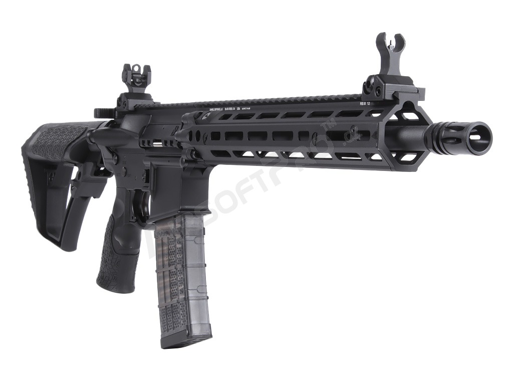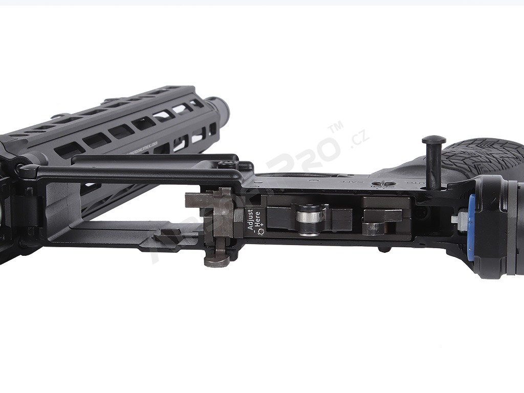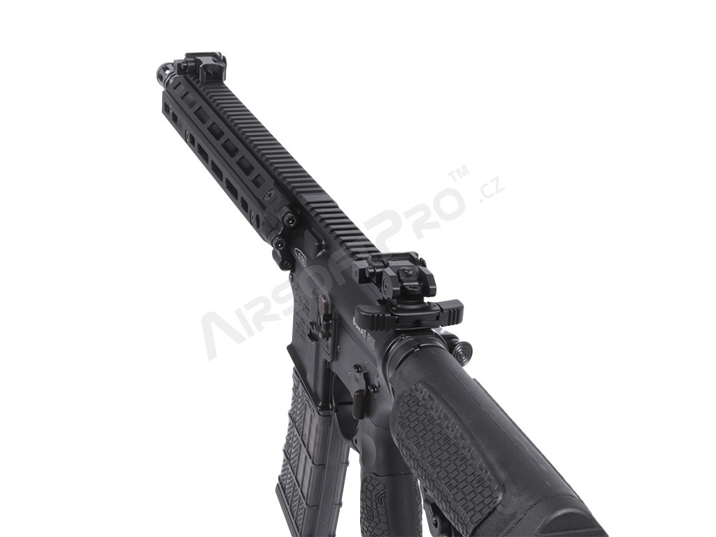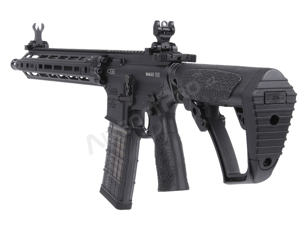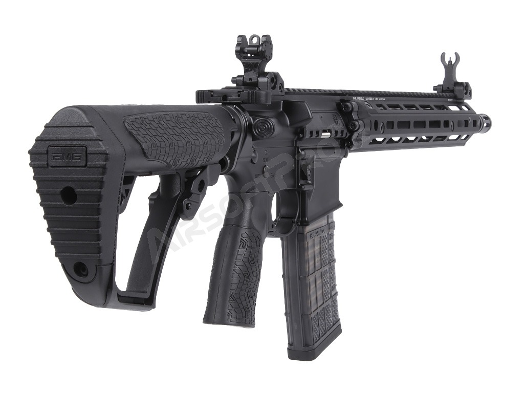 El cañón exterior compacto de 12,5" hace de este rifle una herramienta ideal para el combate a media distancia. El arma está equipada con una culata EMG "ETA" ajustable y un guardamanos ergonómico. Un cargador con licencia Lancer Systems L5 AWM de 30 cartuchos con marcas realistas añade autenticidad.