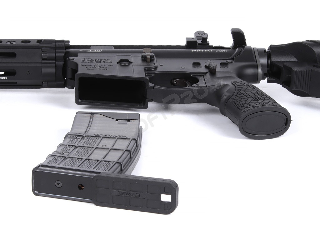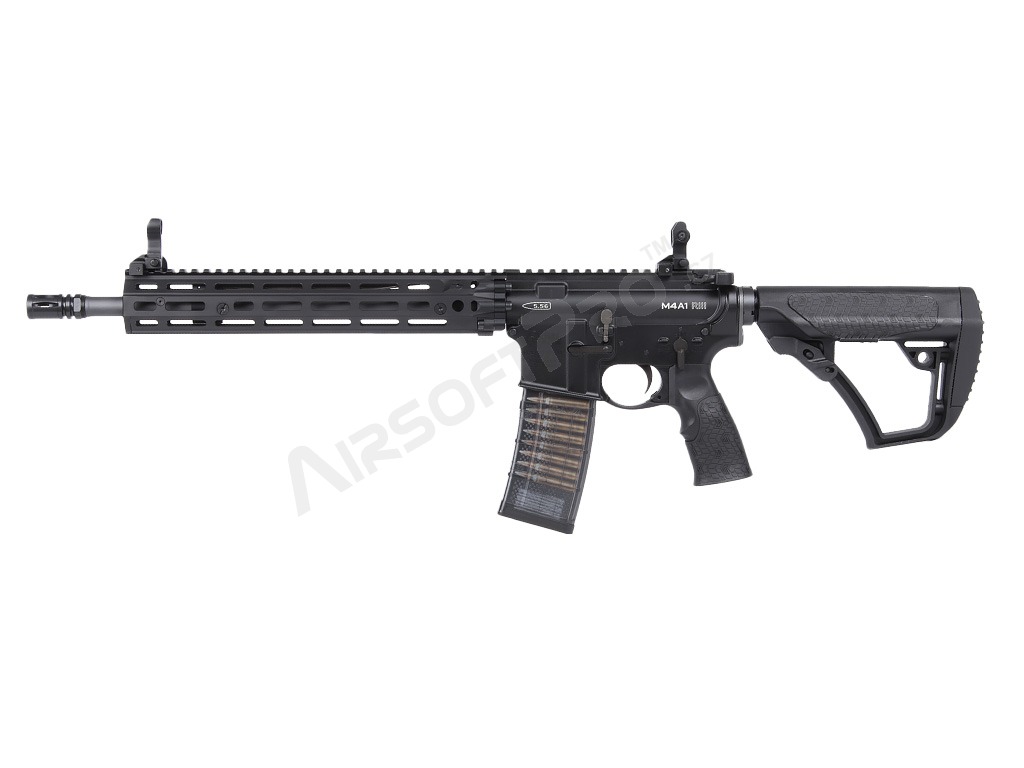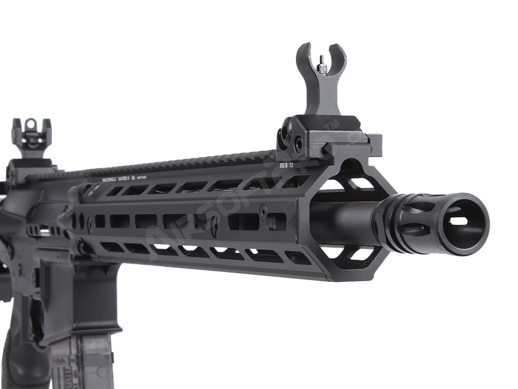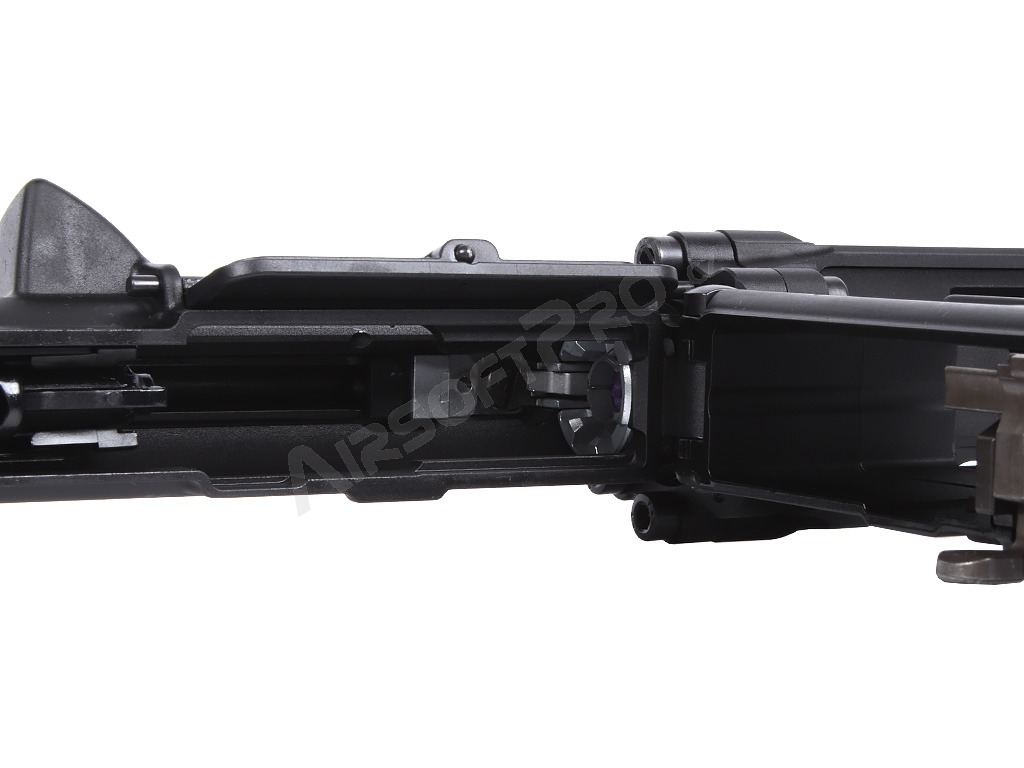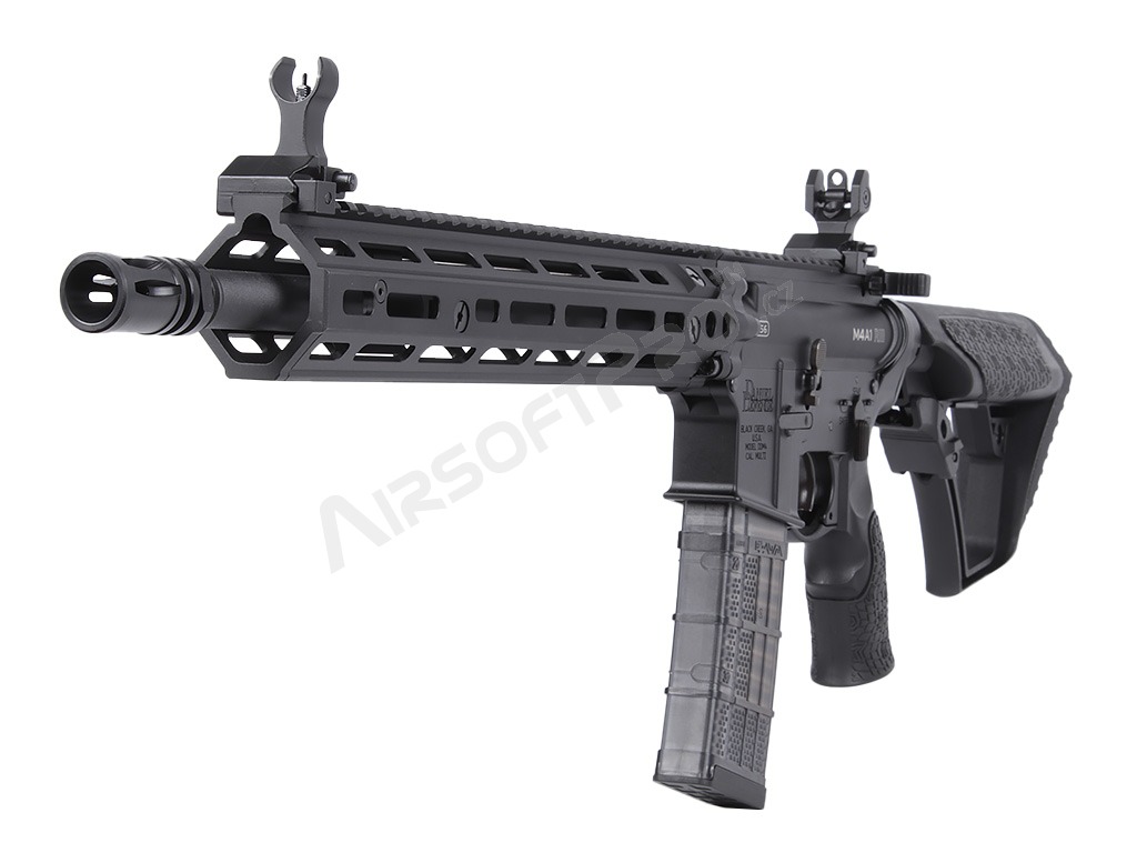 El cañón exterior compacto de 12,5" hace de este rifle una herramienta ideal para el combate a media distancia. El arma está equipada con una culata EMG "ETA" ajustable y un guardamanos ergonómico. Un cargador con licencia Lancer Systems L5 AWM de 30 cartuchos con marcas realistas añade autenticidad.