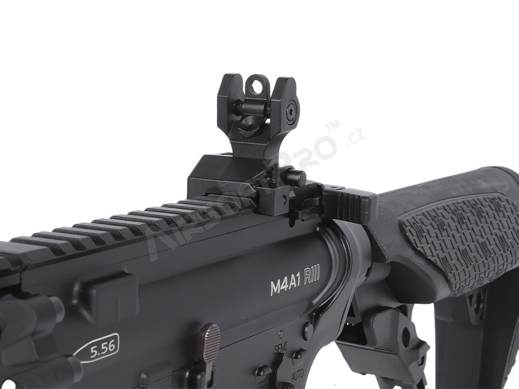 La construcción exterior está hecha de aleación de aluminio de alta calidad. El arma está dominada por el antebrazo Daniel Defense RIII con licencia. Es un sistema de flotación libre y ultraligero que ofrece el sistema M-LOK para montar empuñaduras, linternas o el lanzagranadas M203 sin necesidad de herramientas especiales.