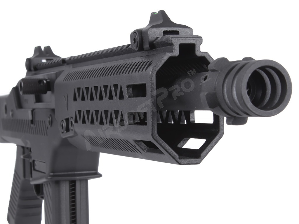Está disponible en múltiples variantes con componentes fácilmente intercambiables que permiten a los jugadores personalizar su arma para todos los entornos de juego, desde el trepidante CQB hasta los enfrentamientos a larga distancia. El arma cuenta con una empuñadura flotante M-LOK, culata y guardamanos fabricados en polímero de alta calidad, y el cuerpo está mecanizado por CNC a partir de aluminio aeronáutico. Por supuesto, dispone de anillas QD para la eslinga y mandos ambidiestros.
