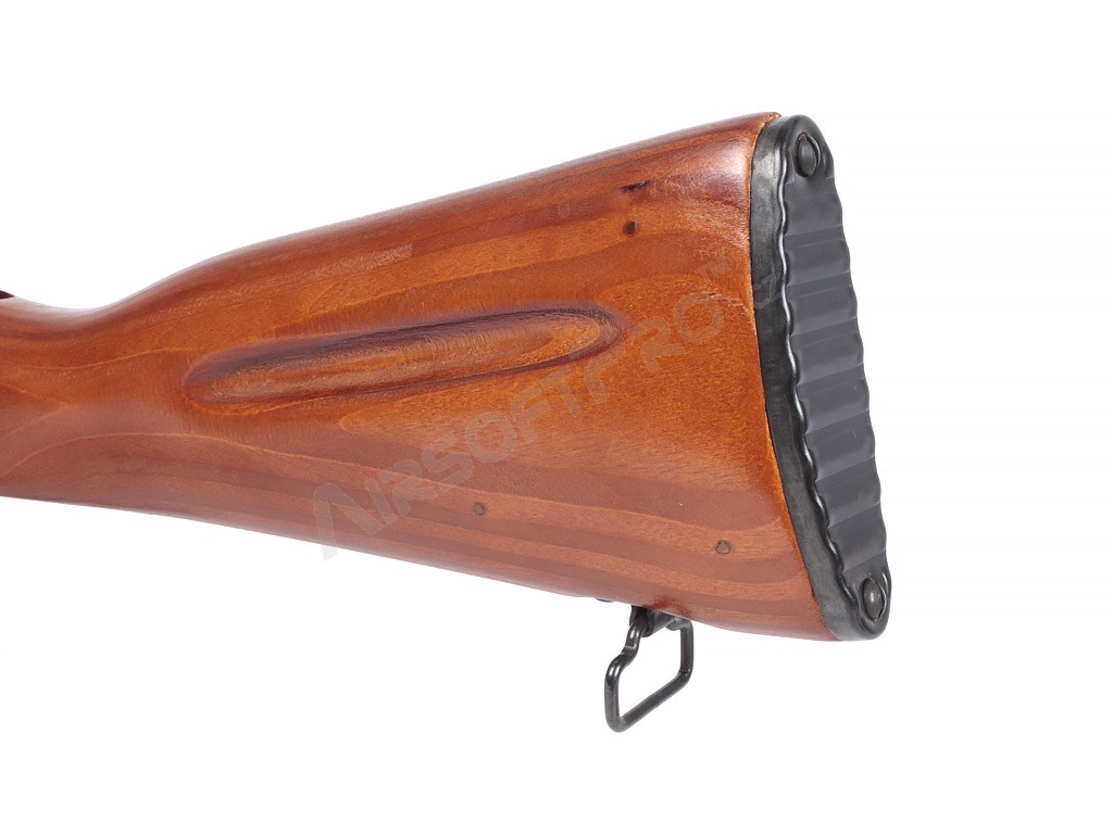 El arma es 1:1 a su modelo real. El arma es toda de metal (chapa doblada), el antebrazo y la culata son de madera real, lo que le da al arma un aspecto único. La culata es de plástico ABS. La sensación de realismo se ve reforzada por el peso del arma, que es de casi 3,5 kilogramos. En el lateral del arma podemos encontrar un raíl para añadir una montura RIS, en la que luego se puede colocar, por ejemplo, un colimador. Carril RIS abajo en los accesorios relacionados.
