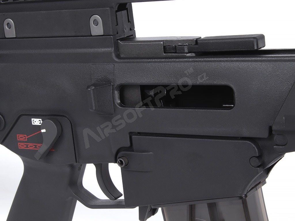 El interruptor de disparo está diseñado como el original: ambidiestro y ofrece los modos bloqueado/simple/dosis. Esto hace que la réplica sea adecuada para tiradores zurdos. El cargador tiene una capacidad de 32 BB y corresponde a los parámetros reales del arma.