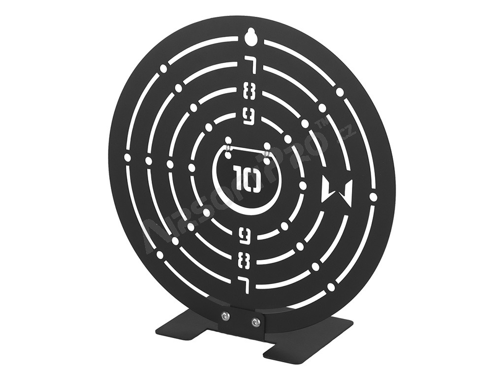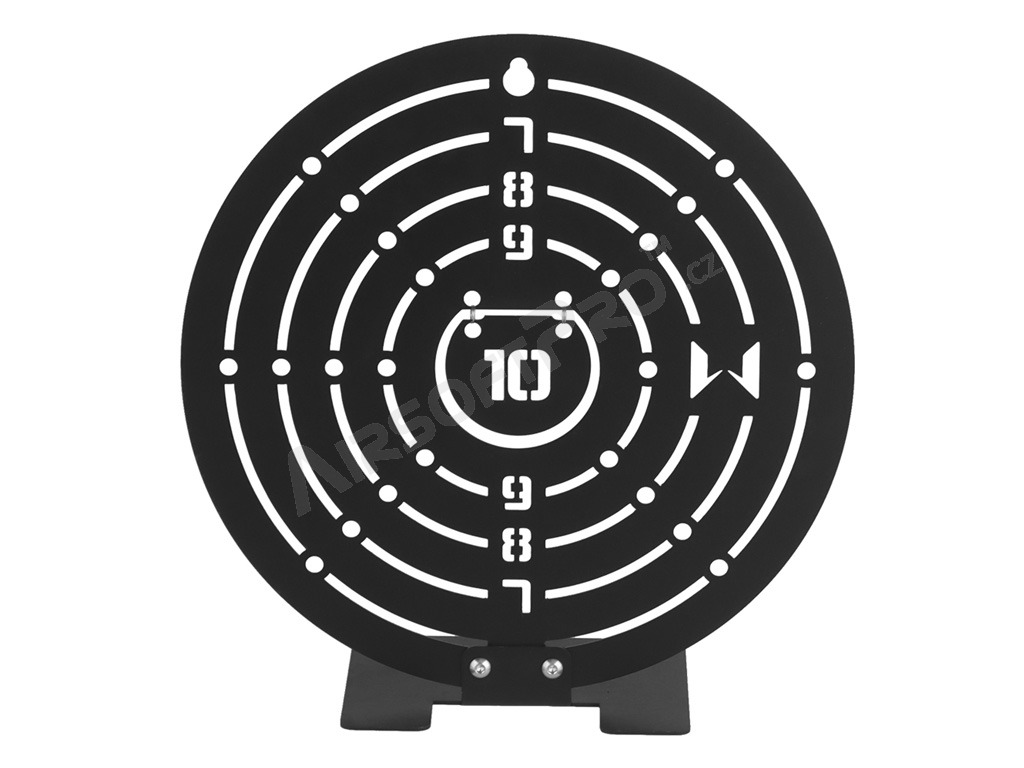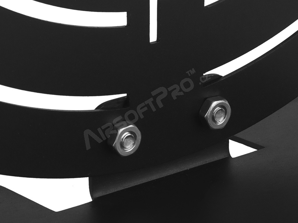La diana, al igual que la base, está cortada con láser en chapa de acero de 1,5 mm con acabado en negro. La diana tiene los bordes mecanizados para un manejo seguro.