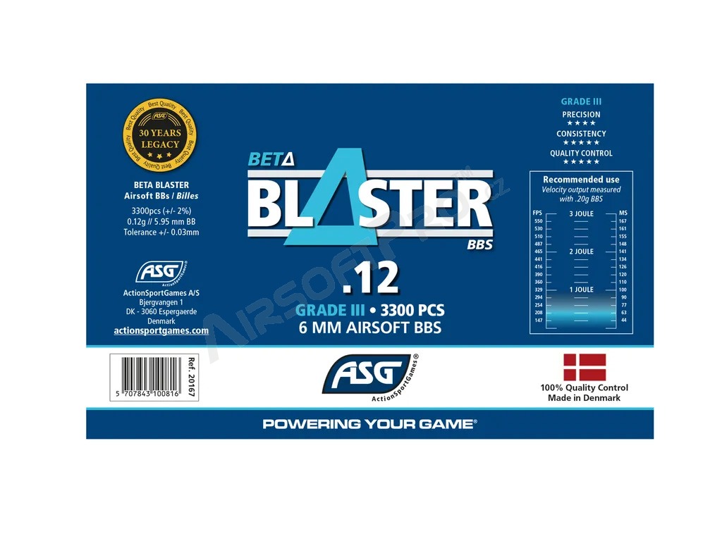 Los BBs de la marca BLASTER de ASG son algunos de los BBs de mayor calidad disponibles. Las dimensiones tienen una tolerancia de sólo /-0,03 mm, lo que hace que su tamaño sea extremadamente consistente. Además de la alta consistencia dimensional, todos los BLASTER BBs están recubiertos con una superficie especial para mejorar la suavidad que garantiza una pérdida de compresión casi nula al disparar. La precisión dimensional y el recubrimiento especial garantizan una calidad extremadamente alta y sitúan a la marca BLASTER entre los mejores balines del mercado.