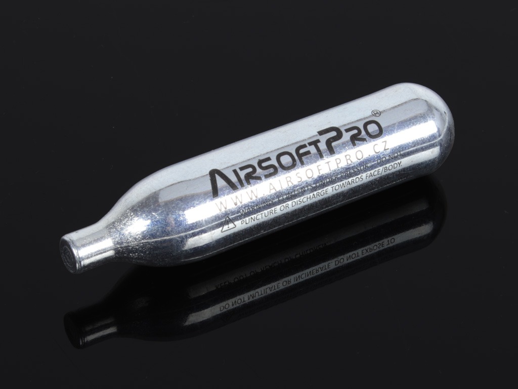 Cartucho desechable deCO2 AirsoftPro de 12 gramos diseñado parauna propulsión fiable de armas de aire comprimido y airsoft conCO2.