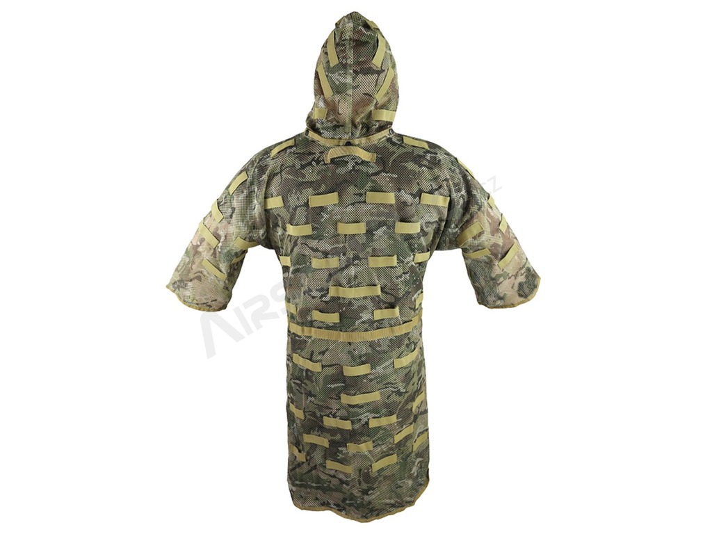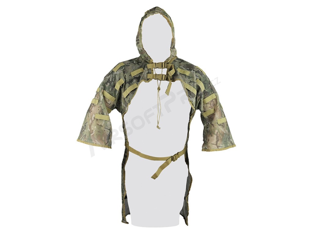 El chaleco incluye una capucha desmontable que ayuda a romper la silueta de la cabeza y aumenta el nivel general de camuflaje. El chaleco cuenta con dos correas para el pecho y una para la cintura, todas ellas equipadas con hebillas de fácil desprendimiento, lo que permite ponérselo y quitárselo rápidamente sin retrasos innecesarios en el juego.