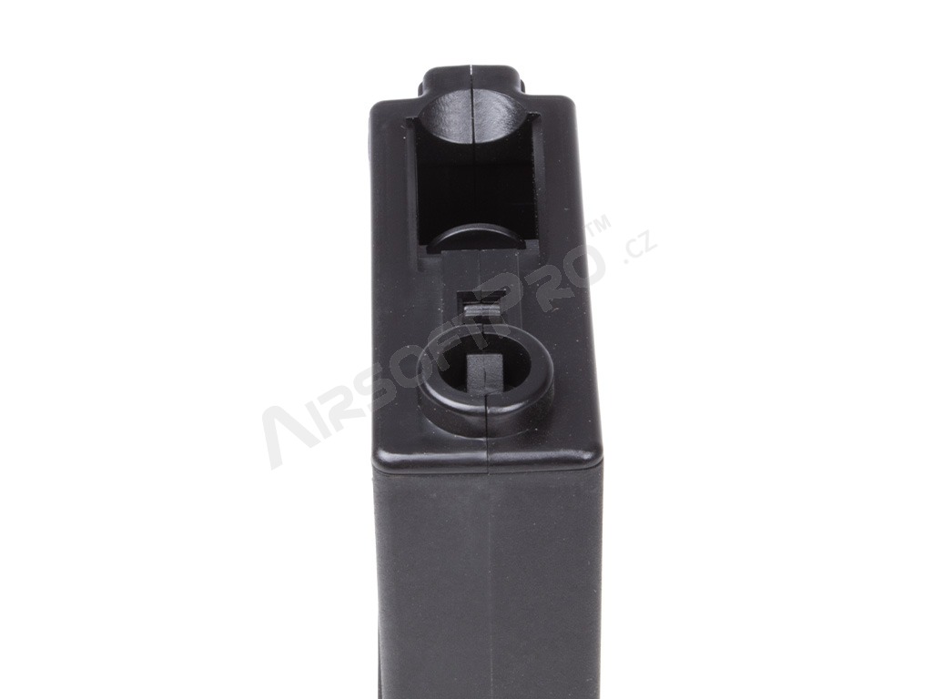 Los perdigones se introducen simplemente por el orificio de cierre superior del cargador. Mediante una rueda dentada (que sobresale de la parte inferior del cargador) se extiende el mecanismo interno que introduce automáticamente los perdigones en el arma. Así, teóricamente es posible disparar todo el cargador en un solo amartillado completo antes de disparar.
