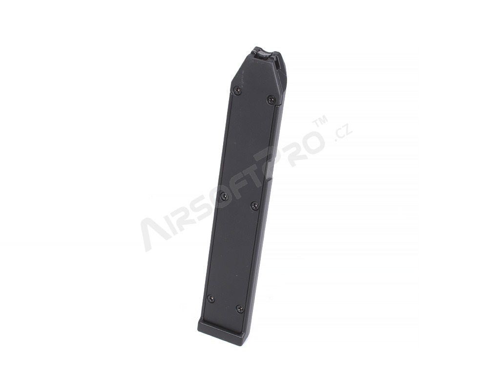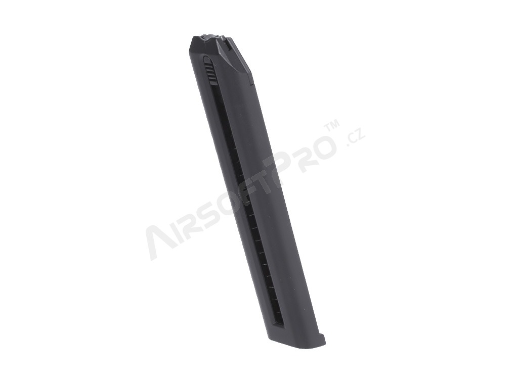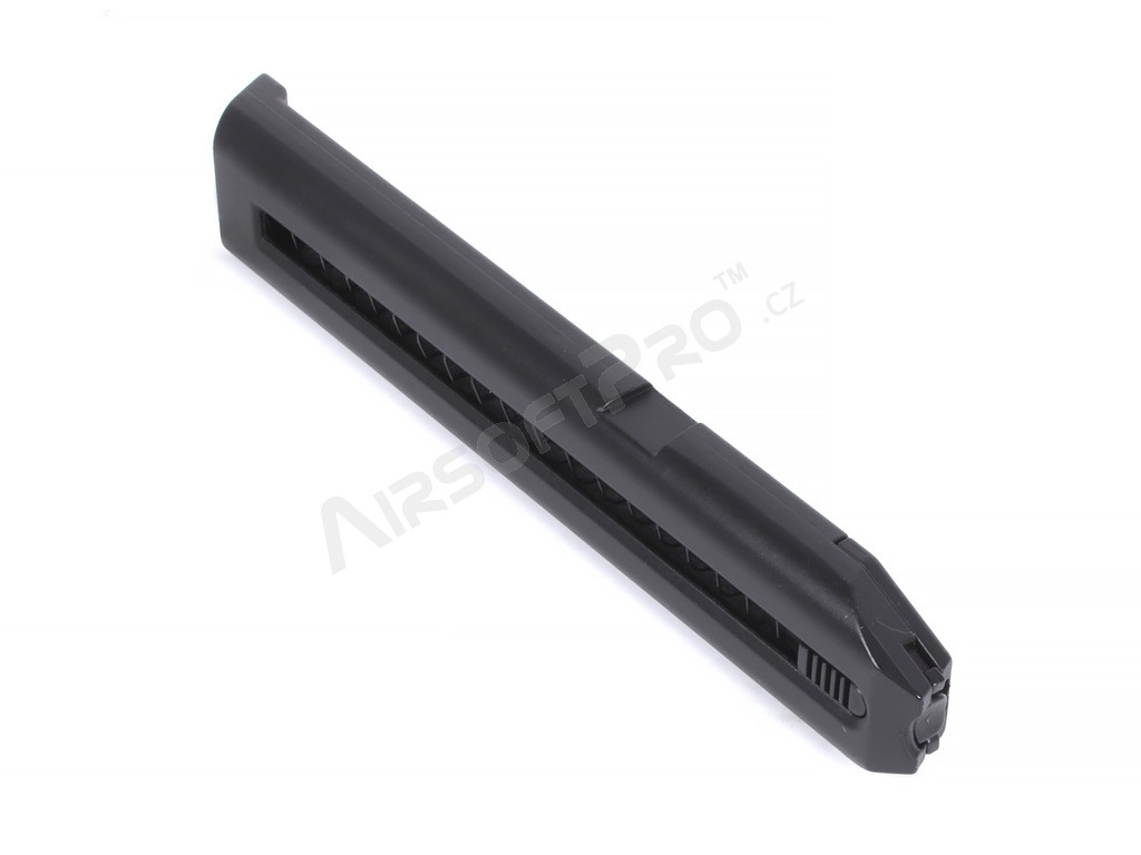 Cargador metálico de empuje para pistolas eléctricas Cyma. Contiene 28 pellets.