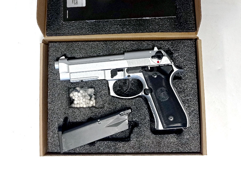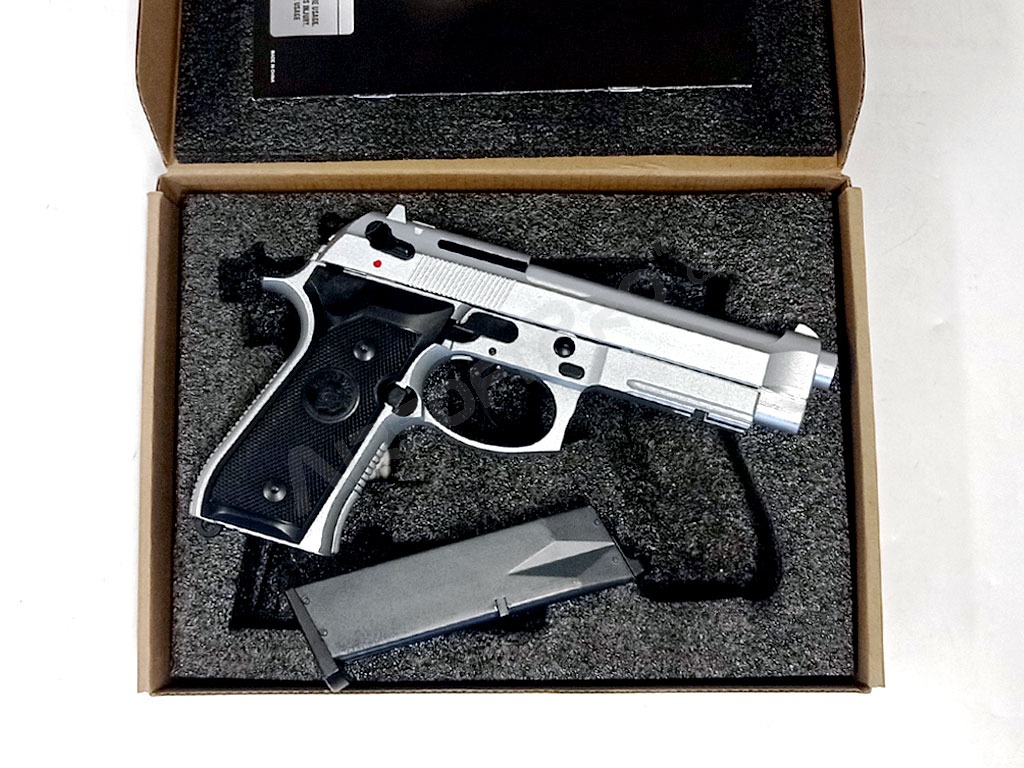 Pistola airsoft M9A1, gas blowback (GBB) - Plateada - INUNCTIONAL [Snow Wolf]