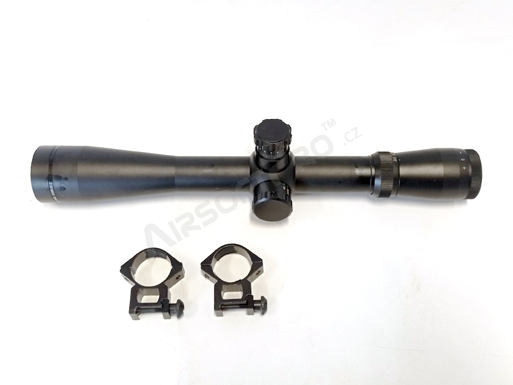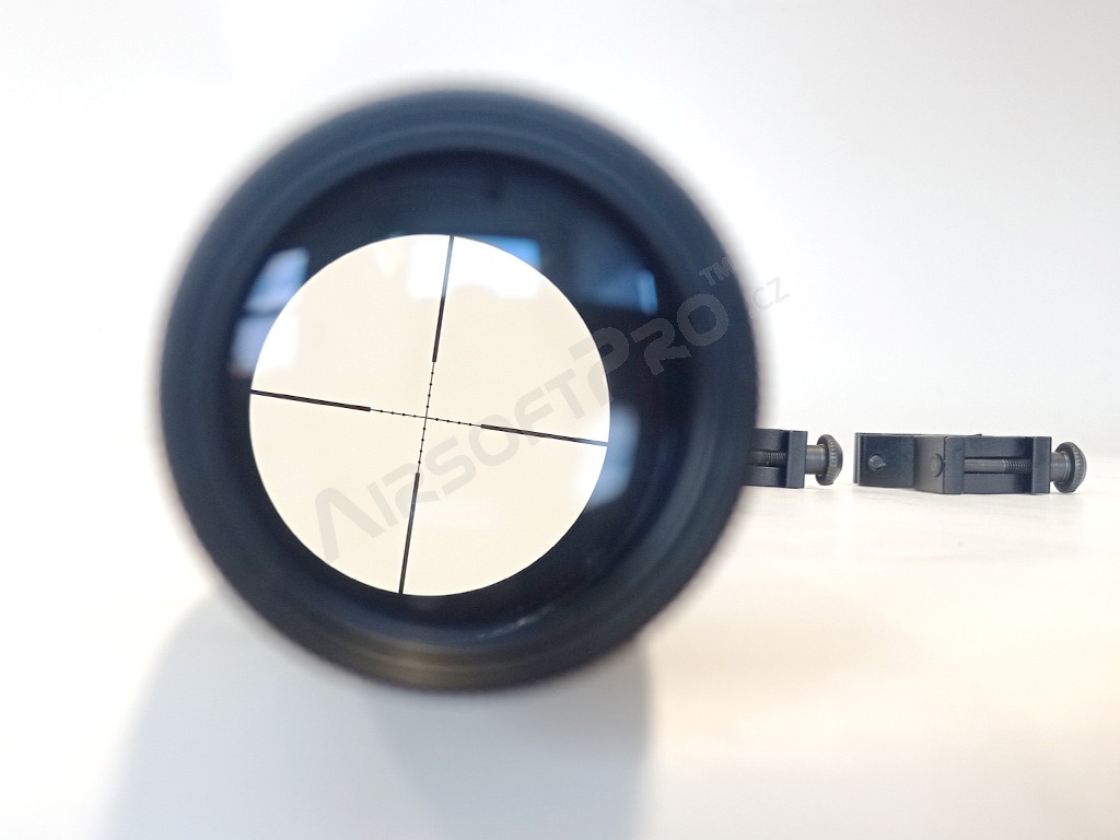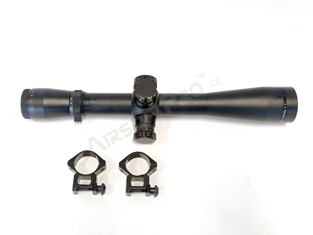 Óptica duradera totalmente metálica con 40 mm de diámetro y aumentos de 3,5x-10x. Permite el ajuste infinito de la retícula en ambos ejes. Aprox. 44,3 mm de diámetro de rosca para parasol