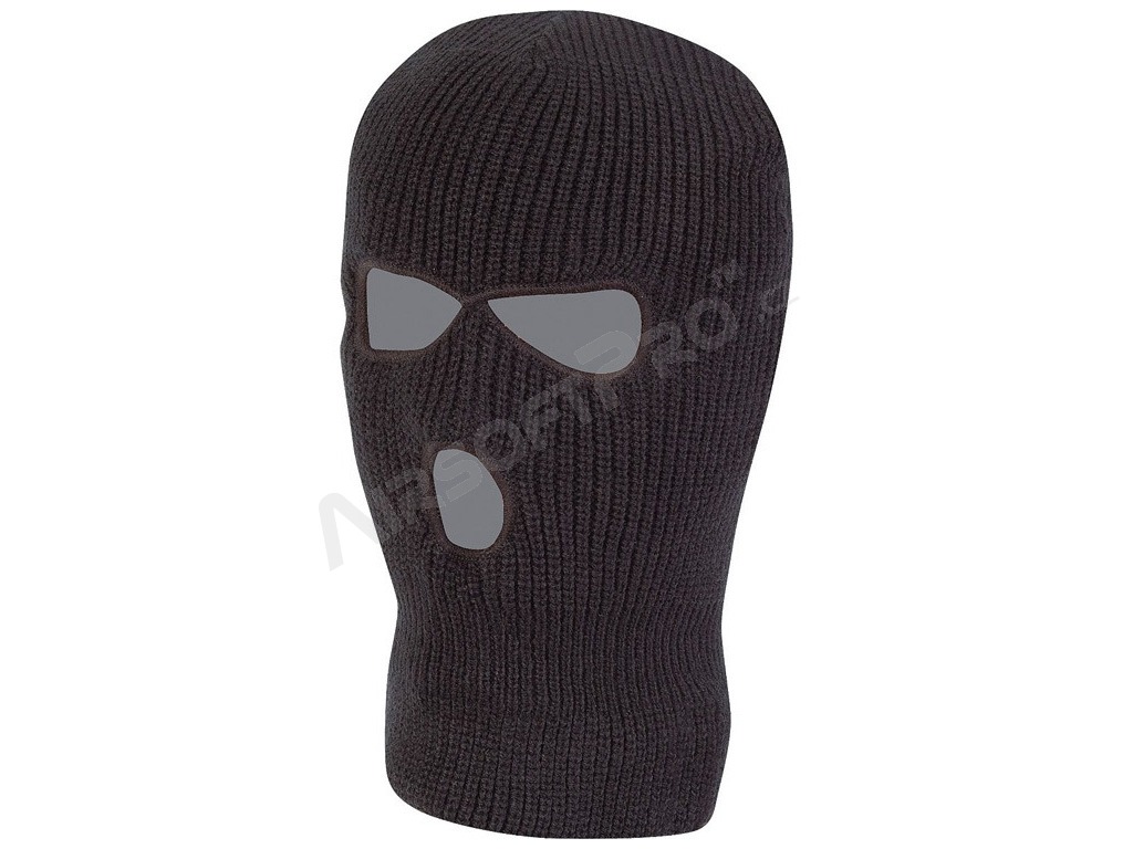 Pasamontañas clásico de punto con tres agujeros de KombatUK. Está diseñado para proteger al máximo la cara y el cuello de condiciones climáticas adversas como el frío y el viento.