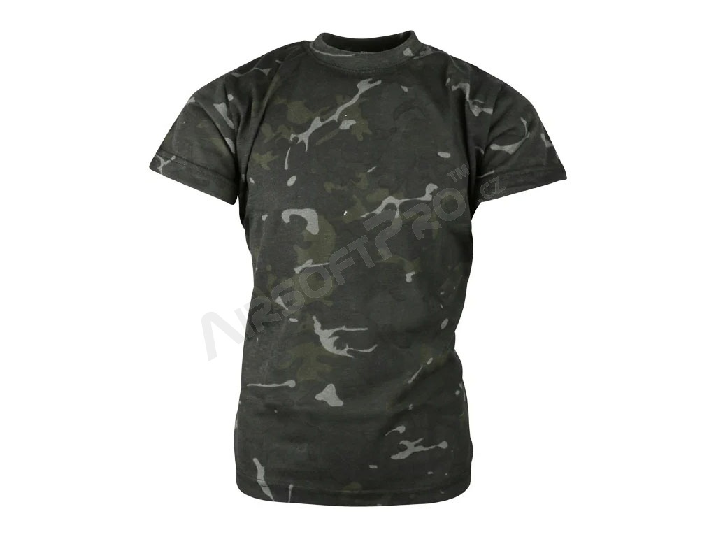 La camiseta infantil con estampado de camuflaje tiene cuello redondo, manga corta y un estampado de camuflaje integral. La camiseta está hecha de algodón 100% con un peso de 170 g/m2, lo que la convierte en la camiseta perfecta para el uso diario o el juego de los pequeños soldados.