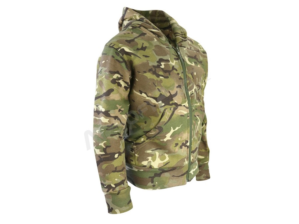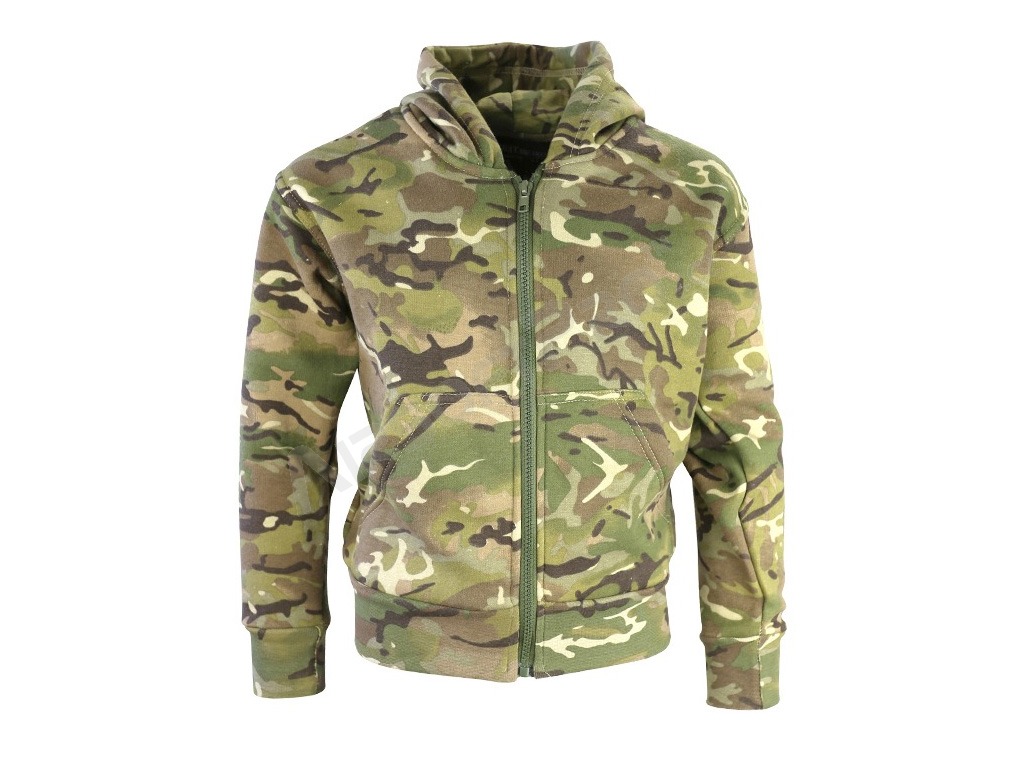 Sudadera polar con capucha para niños con estampado de camuflaje BTP (British Terrain Pattern - similar al estampado Multicam), que gracias al suave forro polar resulta muy cálida y cómoda para llevarla durante todo el día.