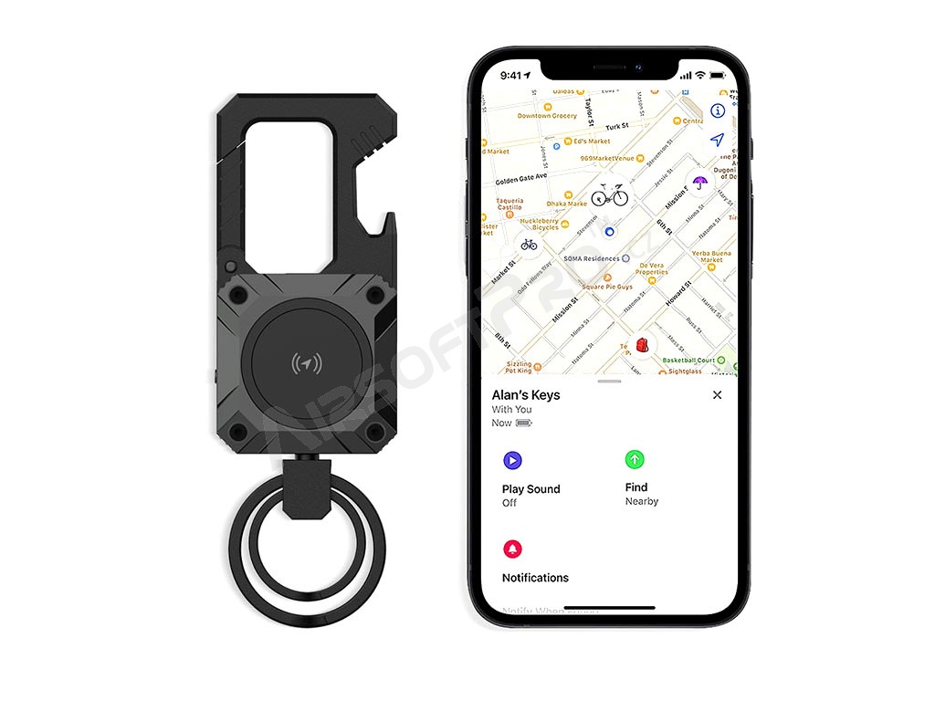Con este elegante llavero metálico, tendrás siempre bajo control tus llaves, mochila u otros objetos de valor. El llavero combina un localizador Bluetooth compatible con Apple Find My y un práctico abrebotellas. Estilo, seguridad y funcionalidad, ¡todo en uno!