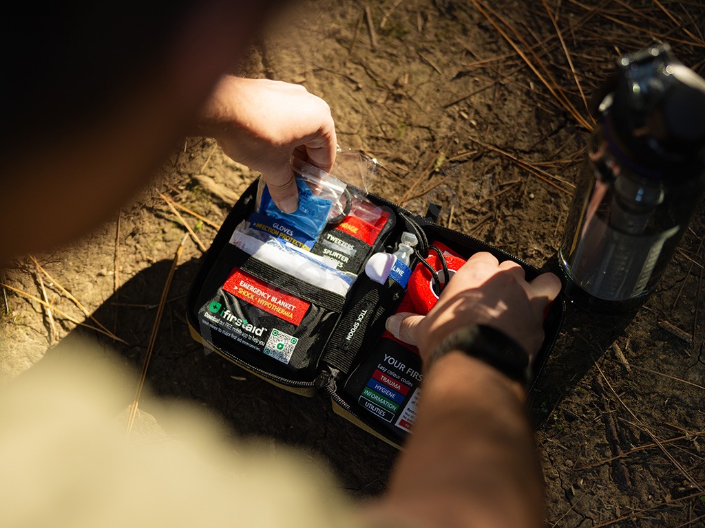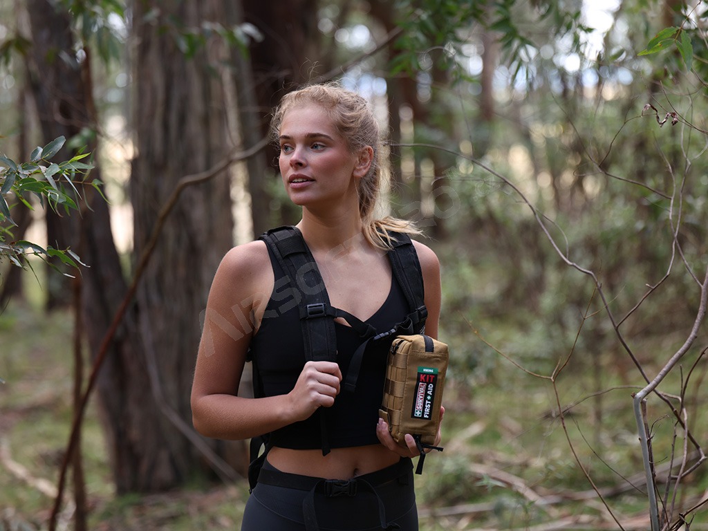 El Hiking Kit es un botiquín de primeros auxilios compacto y profesionalmente montado, diseñado para senderismo, actividades al aire libre y viajes lejos de la civilización. Con un peso de sólo 512 g, cabe fácilmente en una mochila y, gracias al sistema compatible MOLLE, también puedes sujetarlo a tu cinturón o equipo.