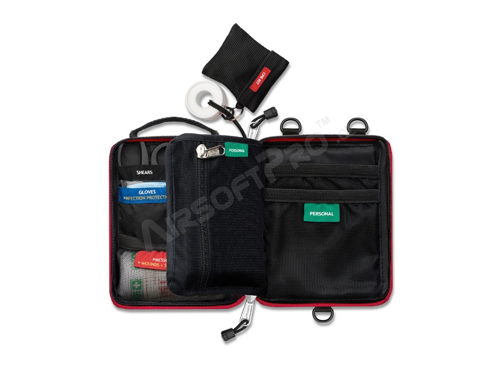 Cada elemento tiene un lugar fijo, los bolsillos son poco profundos y claros, y las etiquetas de texto le indican qué material debe utilizar. De este modo, resulta mucho más fácil orientarse, incluso cuando hay que actuar con rapidez. De este modo, el Small KIT favorece una respuesta rápida, segura y lógica en una situación de crisis, incluso si no tienes experiencia médica.