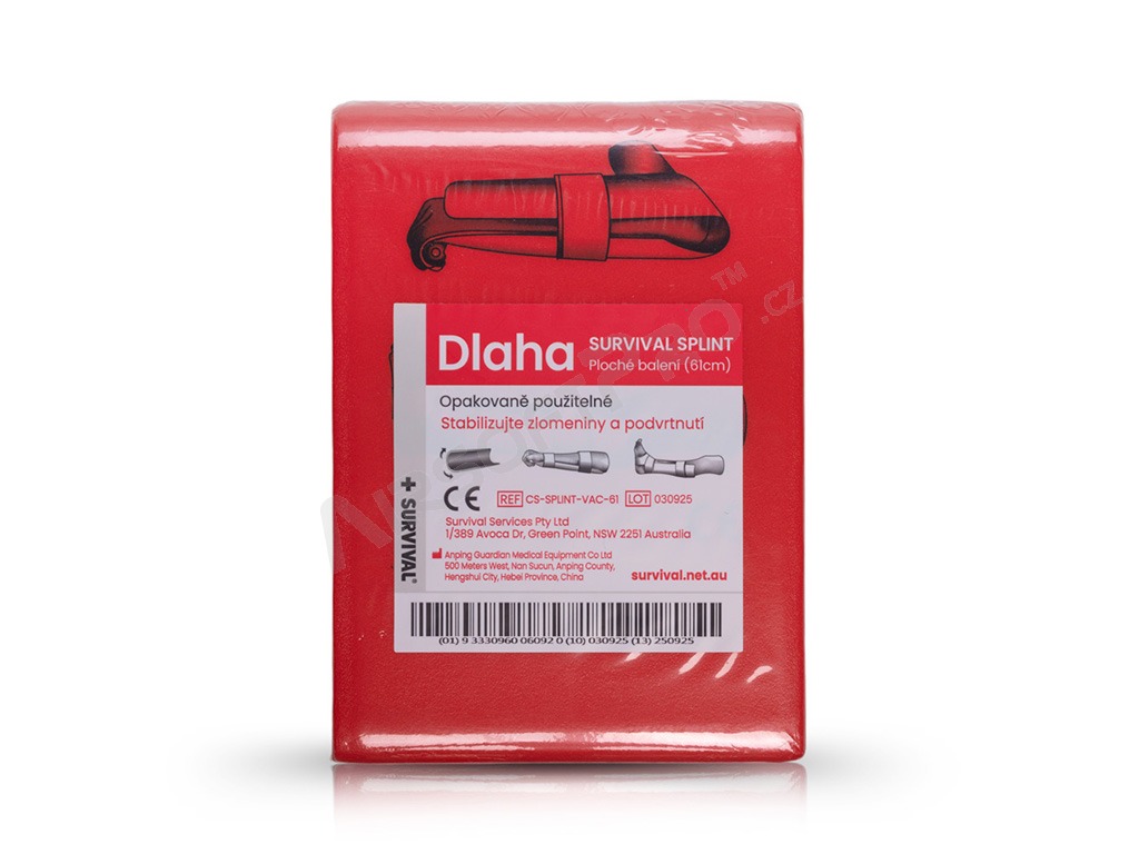 Uno de los elementos clave del Kit Slimline es la férula SURVIVAL (Splint). Ligera, moldeable y duradera, está diseñada para inmovilizar firmemente una extremidad lesionada. Junto con el SMART Bandage™, la guía de tratamiento de fracturas y el material de fijación, forma un kit completo para el tratamiento in situ de esguinces y fracturas.
