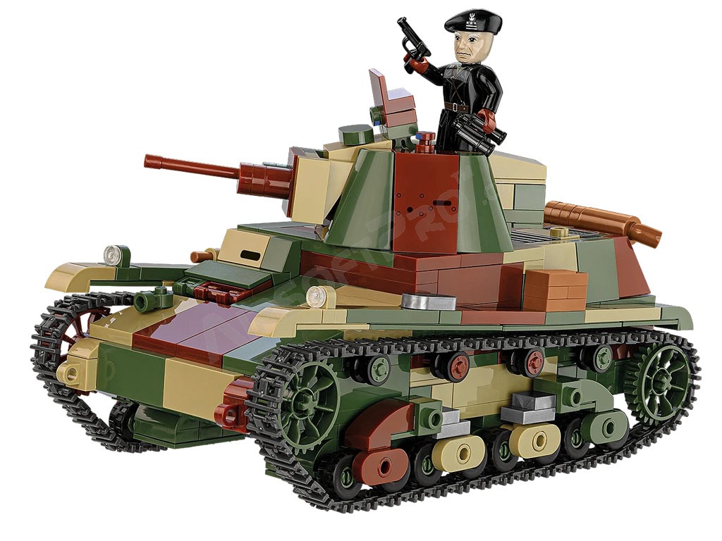 Construye tu propia maqueta del tanque 7TP a partir de los ladrillos del kit. El tanque ligero 7TP fue el vehículo blindado más valioso del ejército polaco durante la campaña de septiembre de 1939. Era la expresión de la ambición del joven país de crear un diseño moderno basado en el tanque británico Vickers. El vehículo estaba equipado con un motor diésel, un periscopio Gundlach giratorio que proporcionaba a la tripulación una mejor visión, un cañón Bofors Mk. 37 mm y una ametralladora Mk. 30 de 7,92 mm. Esto permitió al 7TP luchar eficazmente tanto contra el Panzer I alemán como contra el más avanzado Panzer II. En términos de blindaje, el 7TP sólo era superado por los tanques medios alemanes más recientes: el PzKpfw III E y el PzKpfw IV B-C. Sin embargo, cabe señalar que estos vehículos eran considerablemente más pesados (pesaban hasta 20 toneladas) y sólo constituían una pequeña parte de las fuerzas blindadas alemanas en 1939.