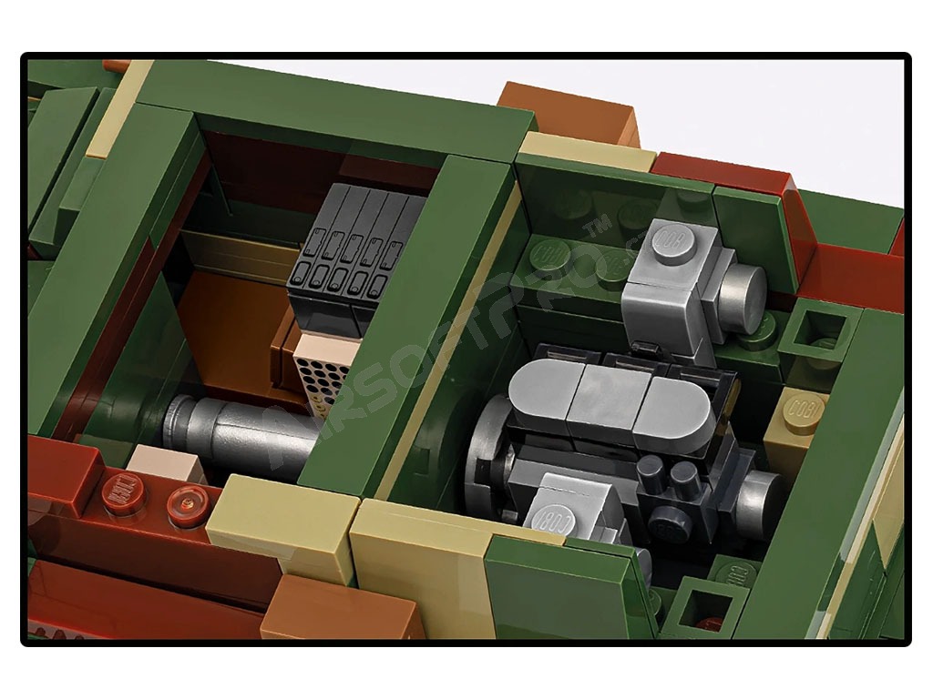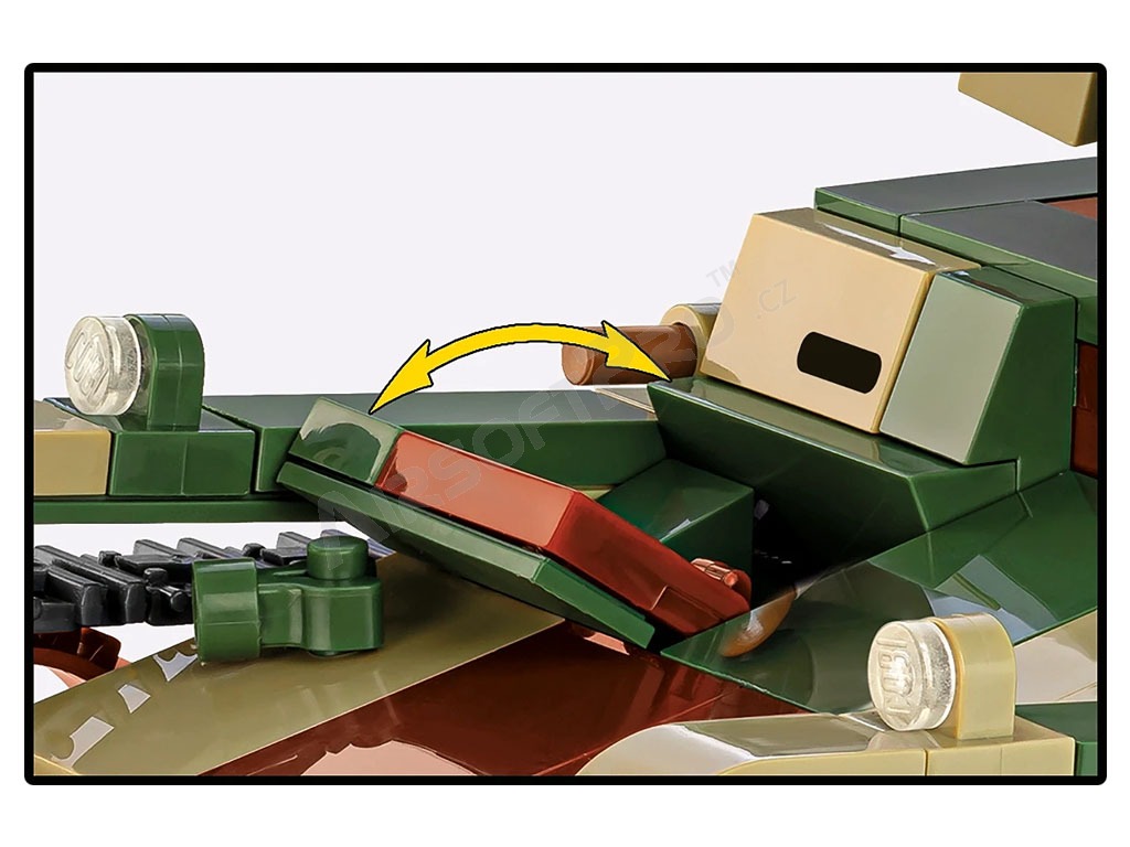 - El modelo tiene escotillas de apertura, torretas giratorias, cinturones funcionales y cañones móviles. El motor del modelo se puede desmontar y exponer junto al tanque.
