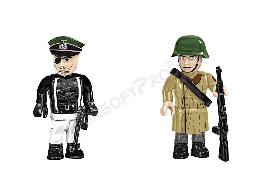 - El set incluye dos figuras cuidadosamente diseñadas: un comandante de tanque y un soldado Volkssturm. Cada uno está equipado con accesorios realistas inspirados en uniformes y armas históricos.