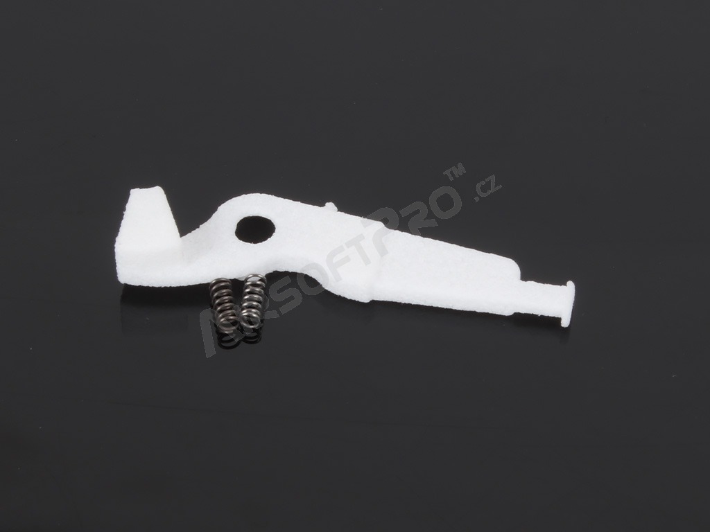 - Clicker integradoajustable - Simulando el gatillo de un arma de fuego real, el Clicker integrado requiere que se ejerza una cierta cantidad de fuerza sobre el gatillo para que se "libere" y dispare. Esta fuerza puede ajustarse según las preferencias del usuario, incluso reduciéndola a cero. También se puede ajustar el recorrido previo (la distancia antes de llegar al punto de ruptura) y el recorrido superior (la distancia que puede recorrer el gatillo cuando se aprieta a fondo).