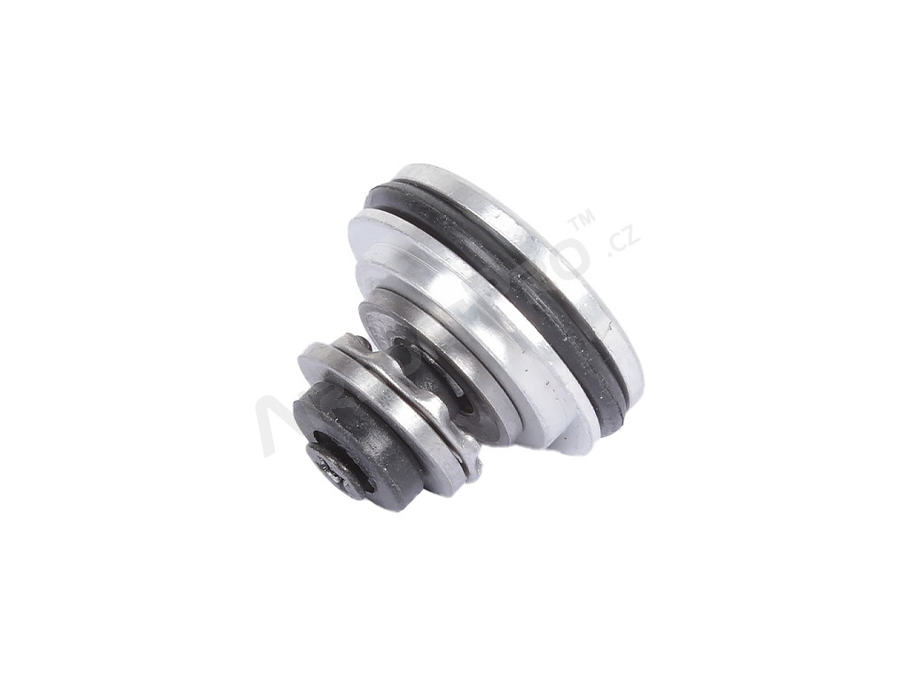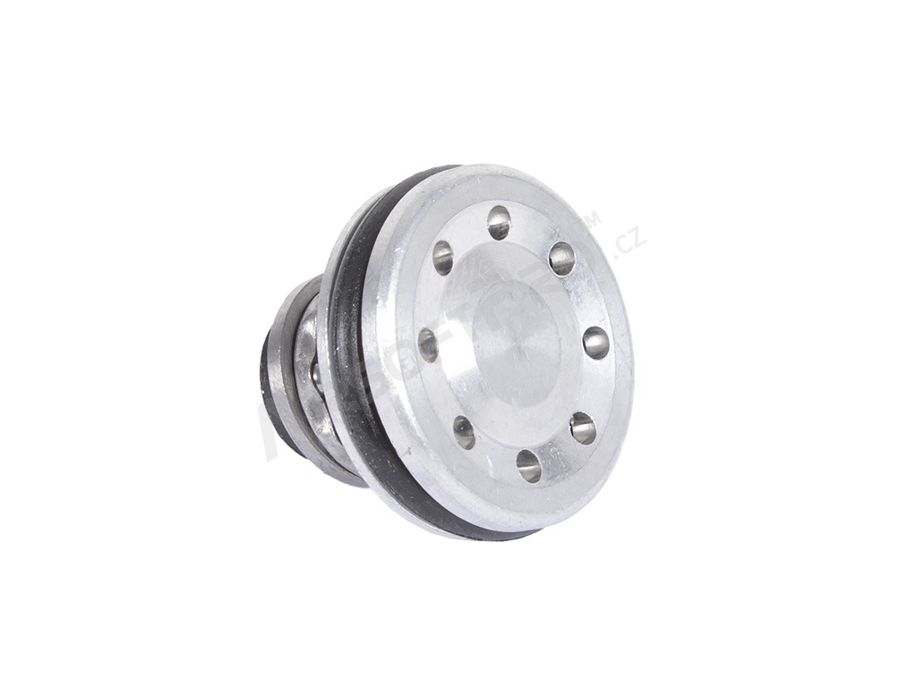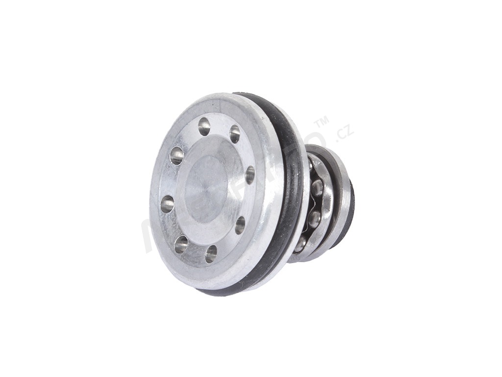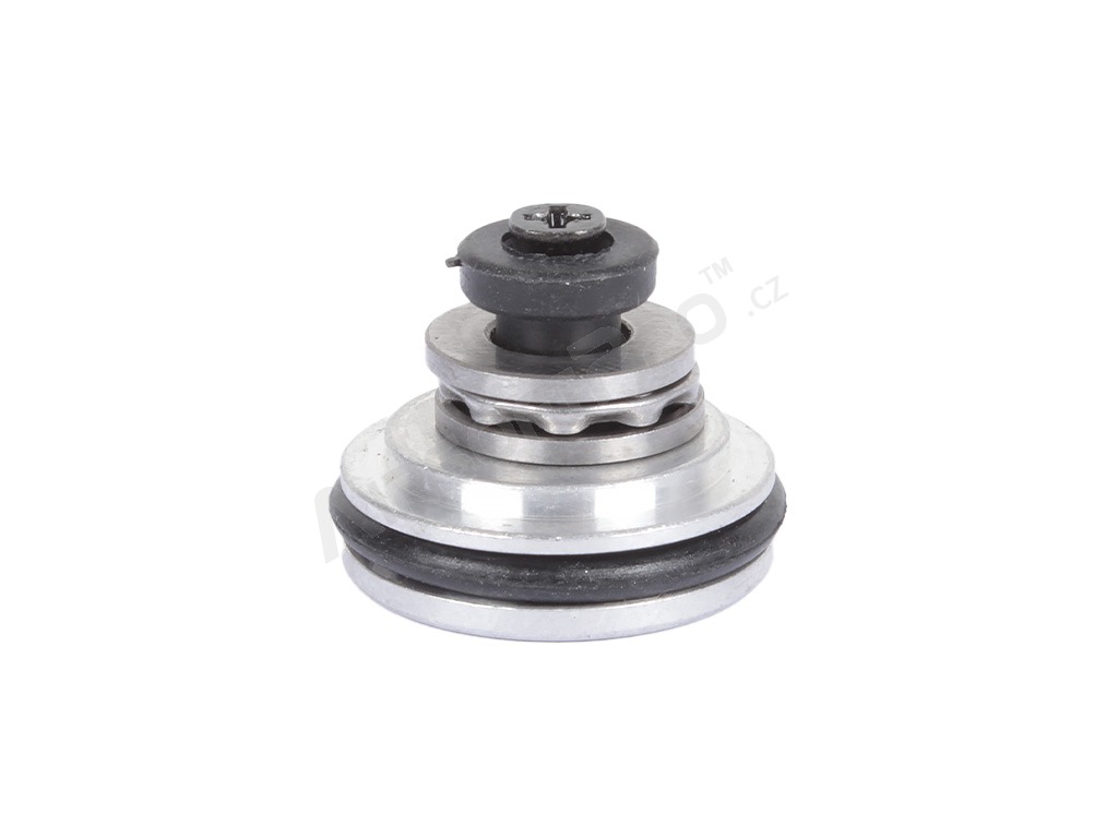 Cabeza de pistón de aluminio con función antipresión y cojinete, diseñada para actualizar pistolas de airsoft. Gracias al procesamiento CNC ofrece dimensiones precisas y una mayor durabilidad en comparación con las piezas de plástico estándar (12 g).