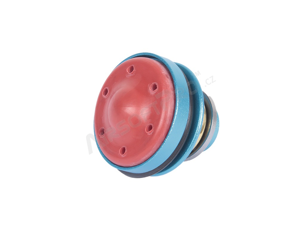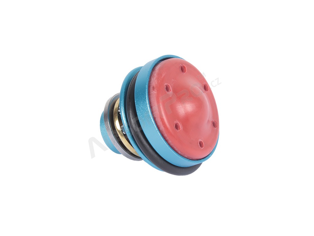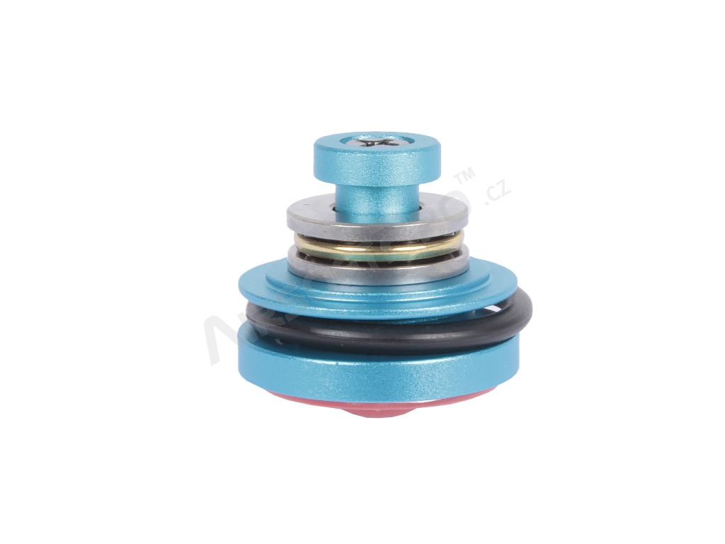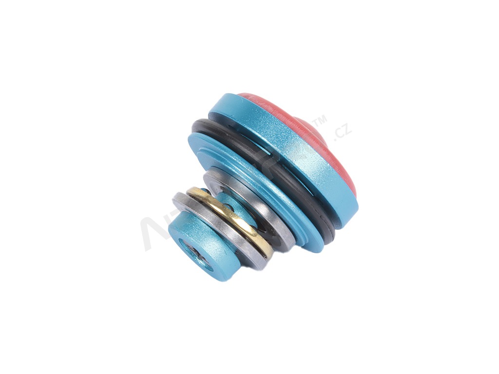 Cabeza de pistón de aluminio con función antipresión y cojinete, diseñada para actualizar pistolas de airsoft. Gracias al procesamiento CNC ofrece dimensiones precisas y una mayor durabilidad en comparación con las piezas de plástico estándar (14 g).
