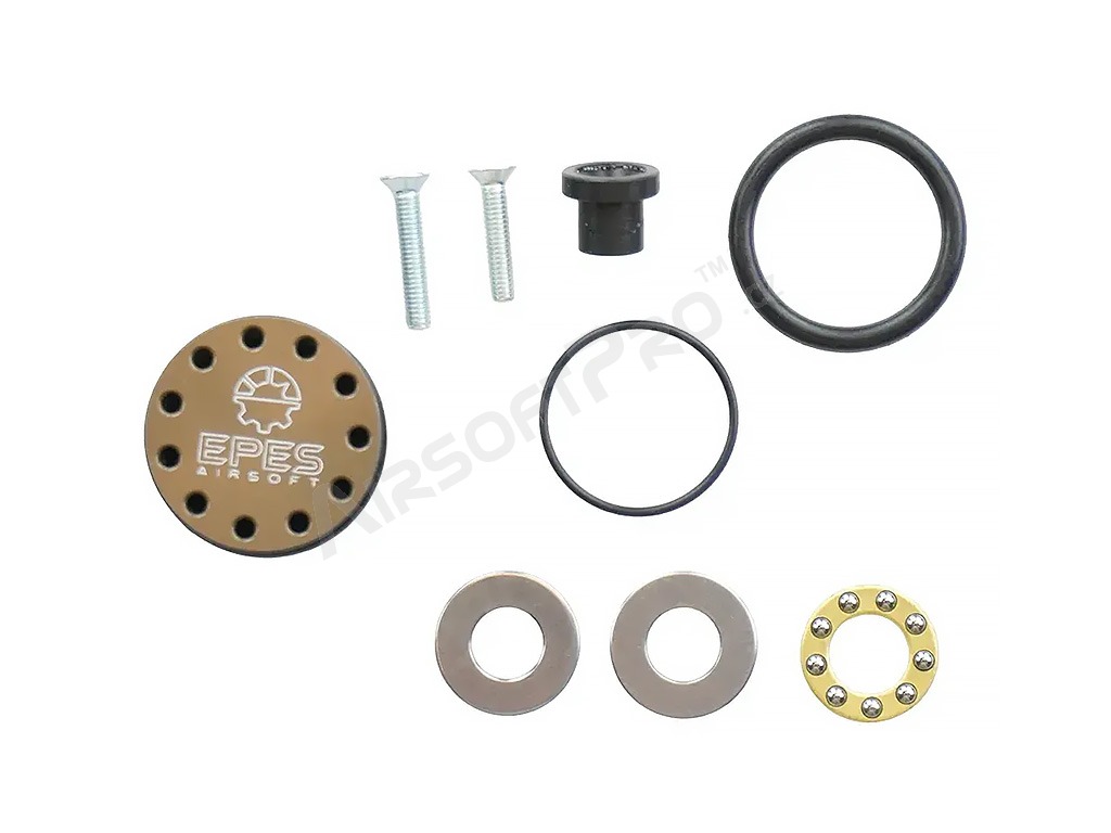 La cabeza del pistón EPeS tiene 11 orificios de entrada para la junta tórica. La ubicación de estos agujeros se eligió para maximizar el área de contacto plana con la goma de impacto de la culata, manteniendo una excelente compresión. Cuanto mayor sea el área funcional de la goma de impacto, más eficazmente se absorberán los golpes del pistón, la pistola funcionará más silenciosamente y se prolongará la vida útil de la goma.