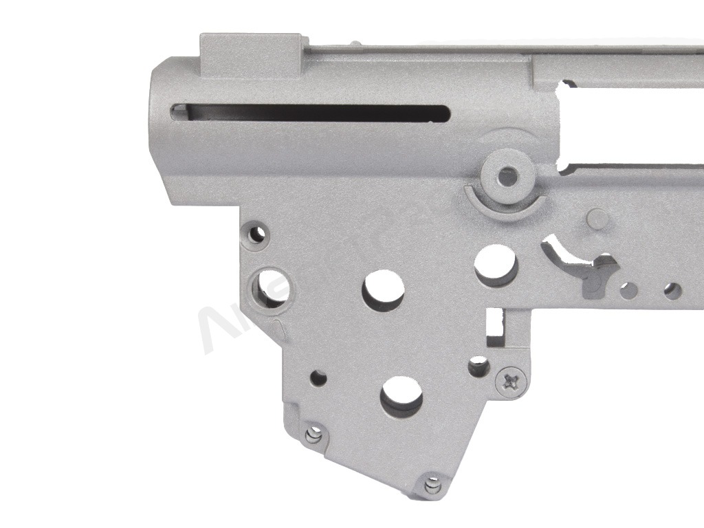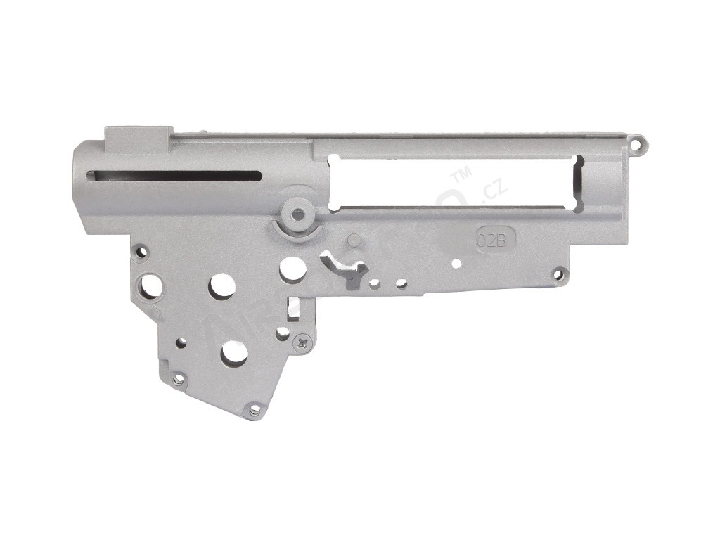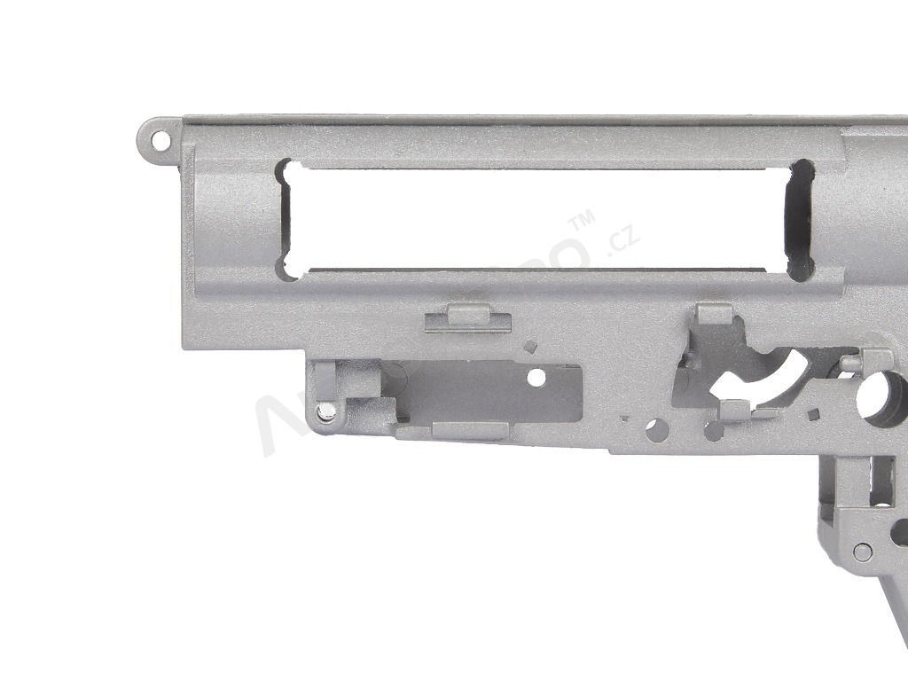 Caja de cambios V3 [CYMA] Esqueleto de mechabox tipo 3 utilizable para todas las armas con mechabox tipo 3. (Así AK,G36,AUG etc.) Pieza original CYMA. El cuerpo de la mechabox es para rodamientos de 8mm. Estos no estan incluidos. El paquete incluye tornillos.