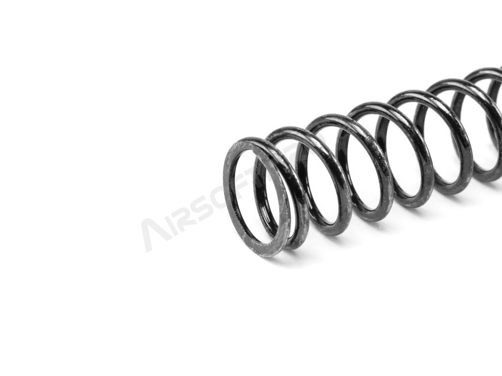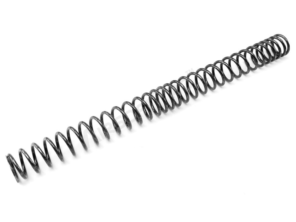 Muelle con bobinado progresivo (irregular) para pistolas eléctricas y SVD manual. Galvanizado en color para facilitar la identificación de cada tipo. El fabricante afirma que los muelles han sido probados hasta 100.000 disparos durante su desarrollo y conservan su longitud y dureza. Fabricado con alambre alemán de alta calidad.