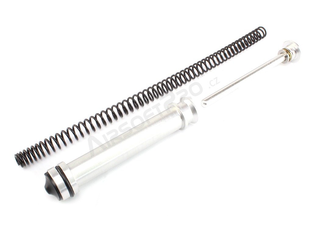 Juego de actualización para rifles de francotirador CYMA M24 (CM.702). En el paquete encontrará pistón de aluminio, varilla con cojinete y muelle. El rendimiento resultante del arma es de aproximadamente 500 FPS (150 m/s)