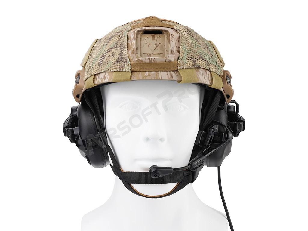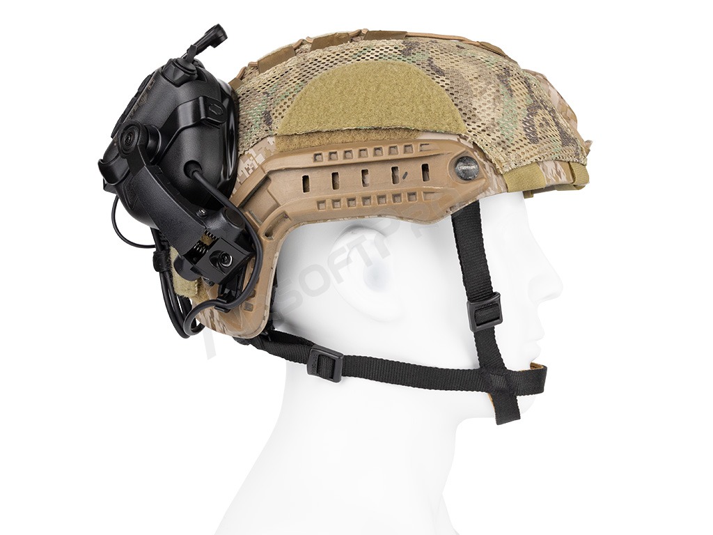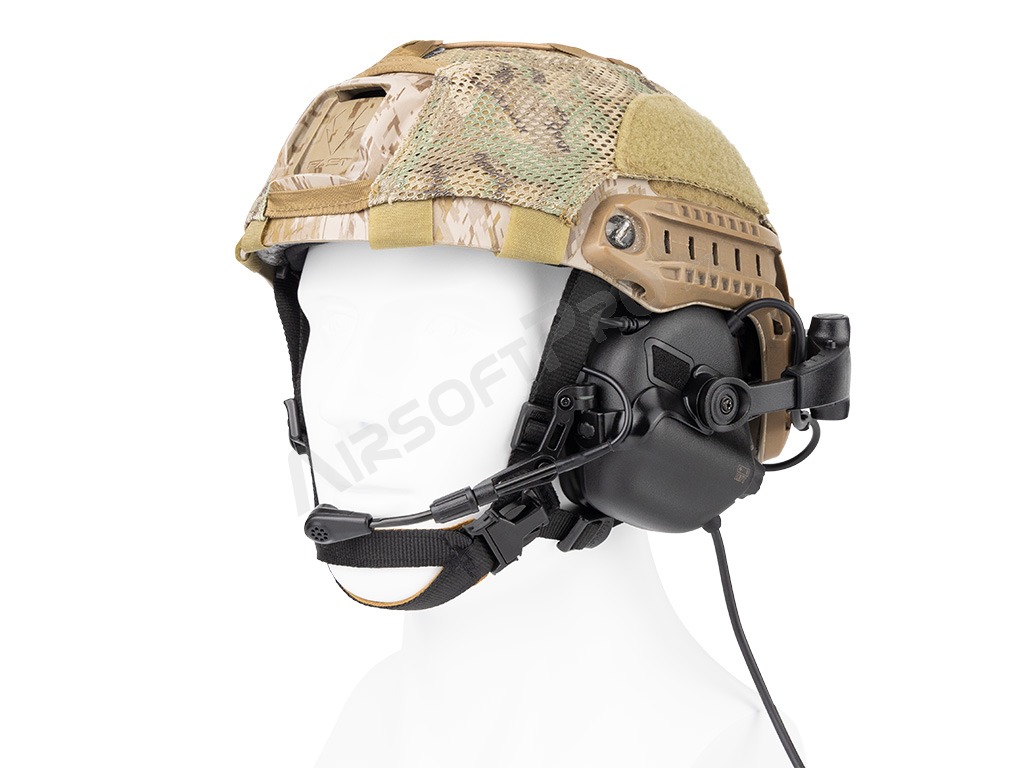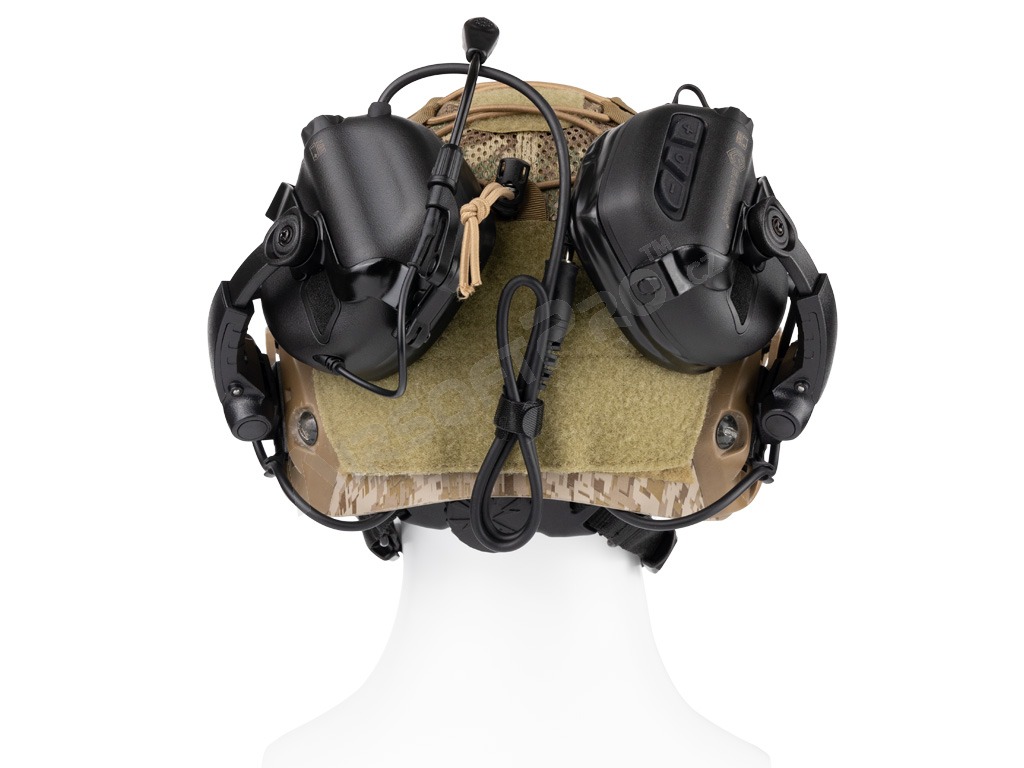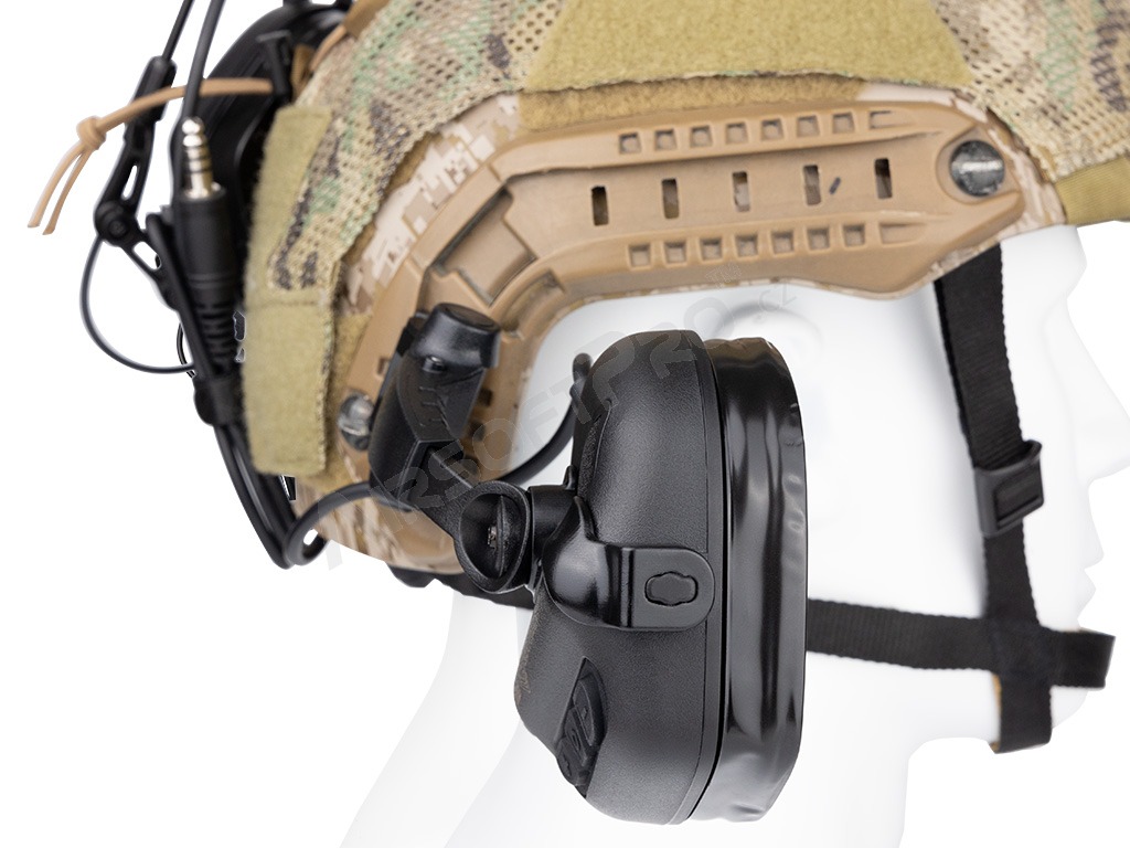El soporte es compatible con los raíles ARC (por ejemplo, los cascos FAST y MICH) y permite abatir o plegar los auriculares en la parte posterior del casco gracias a la articulación giratoria de la base. Las articulaciones de montaje permiten un ajuste sencillo para diferentes formas de cabeza. Optimizado para gafas y visión nocturna. El soporte tiene un diseño robusto y ligero a la vez, que aprovecha al máximo el espacio del raíl lateral.