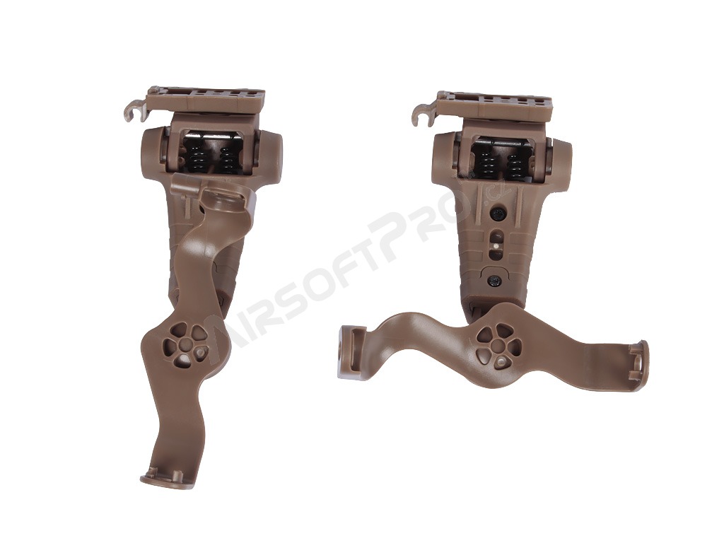 El soporte es compatible con las barras ARC (por ejemplo, para cascos FAST y MICH). Permite abatir o plegar el auricular en la parte posterior del casco gracias a la articulación giratoria de la base. Las articulaciones de montaje permiten un ajuste sencillo para diferentes formas de cabeza. Optimizado para gafas y visión nocturna. La montura tiene un diseño robusto y ligero a la vez, que aprovecha eficazmente el espacio del raíl lateral.