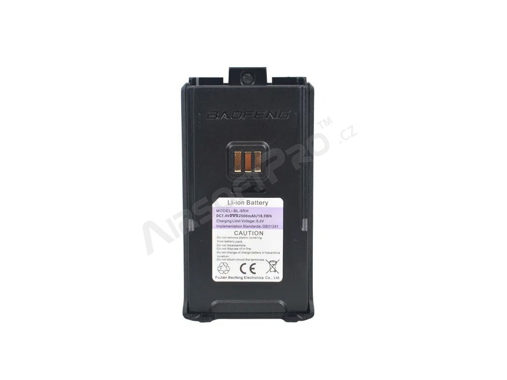 La antena mide 20 cm y es desmontable. El conector de la emisora es un clásico SMA-samec. La batería de iones de litio tiene una capacidad de 2500 mAh / 7,4 V.